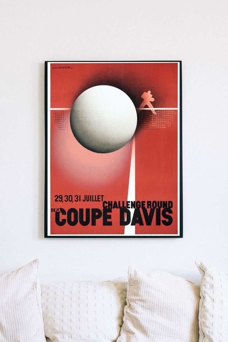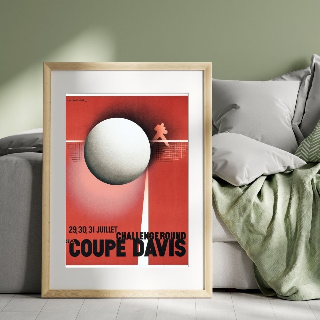 Retro French Tennis Poster – 1960s Davis Cup, International Sports Collectible, Classic Grand Slam Era Print