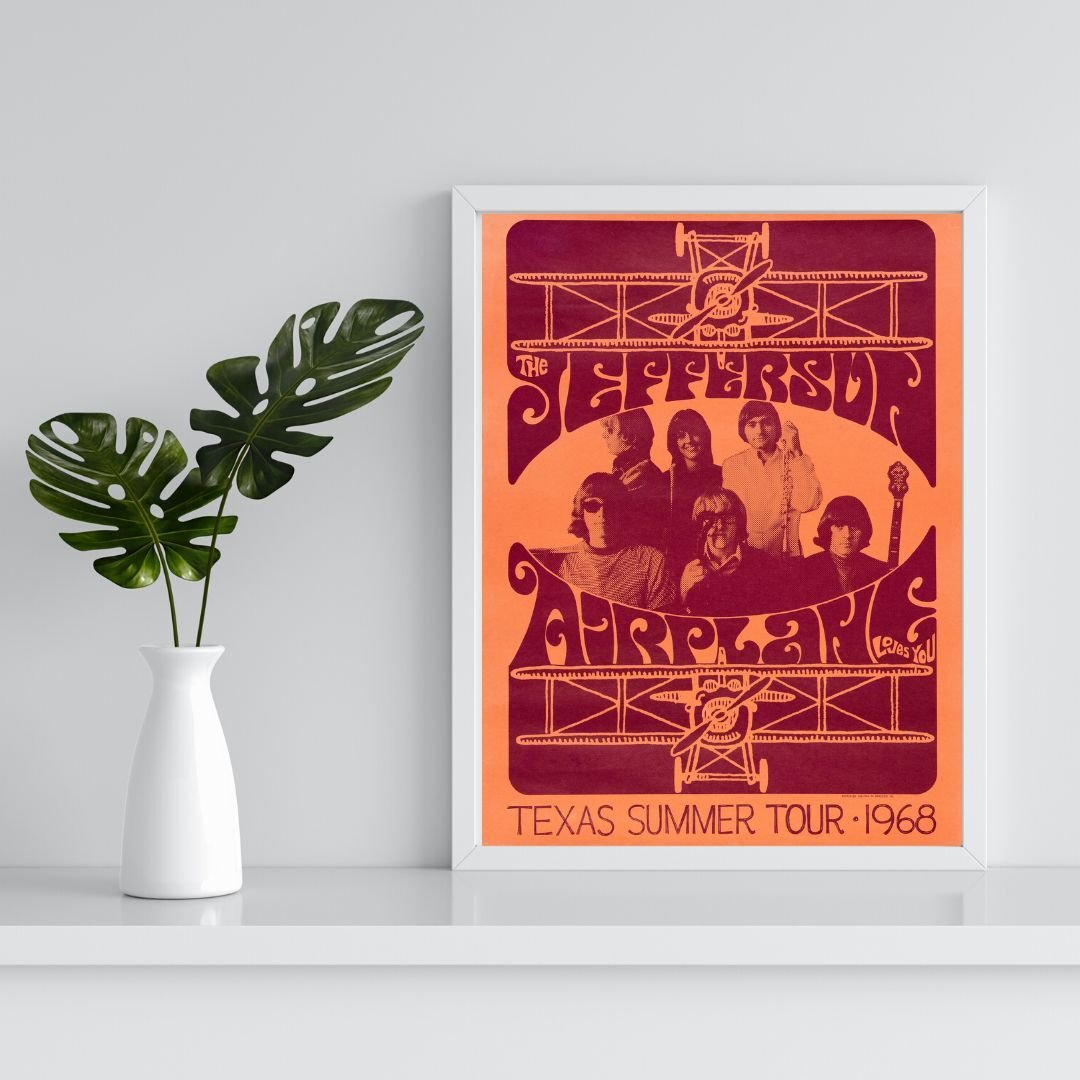 Jefferson Airplane 1968 Texas Tour Poster – Psychedelic Summer Concert Art, Vintage Rock Era Print, San Francisco Sound Poster