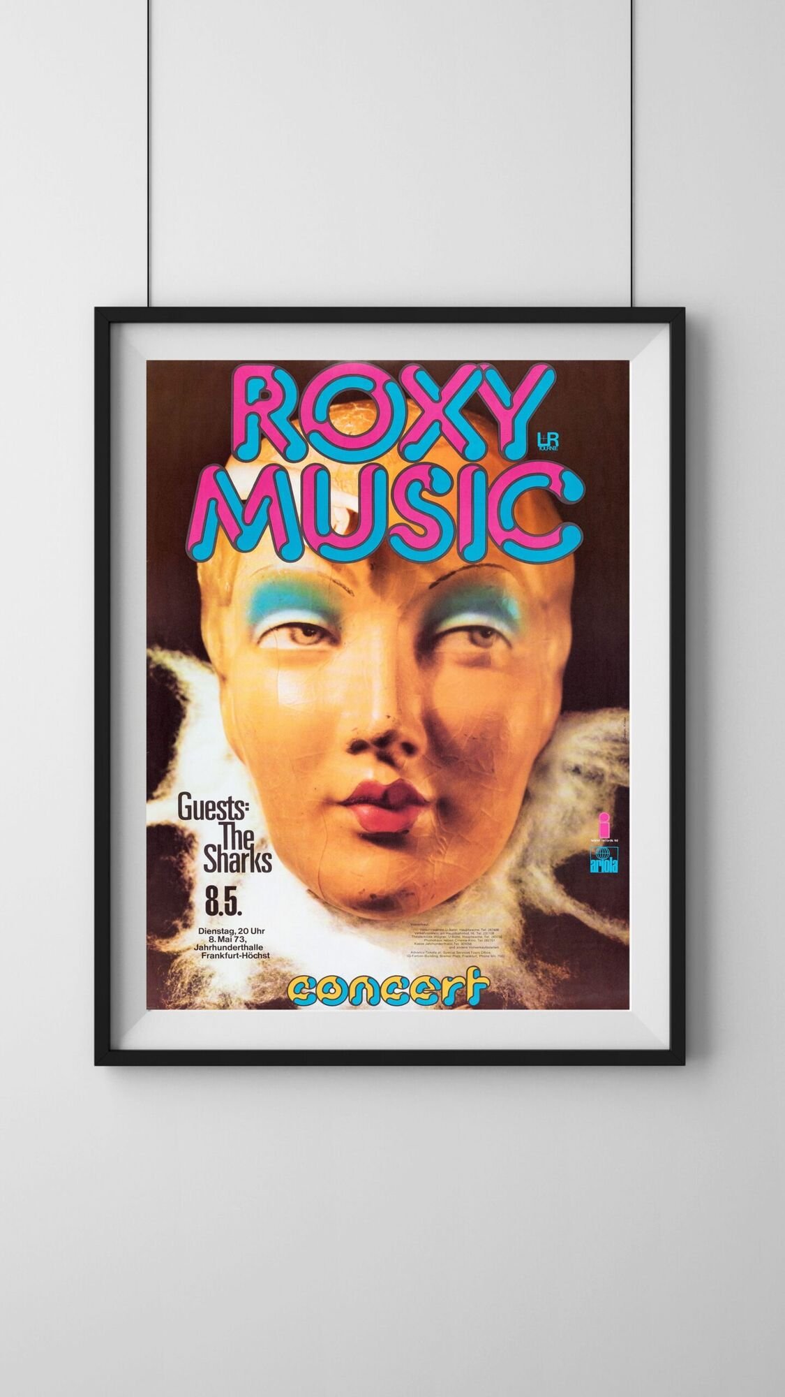 Roxy Music Frankfurt Concert Tour Poster 1970s – Vintage Glam Rock Art Print, Retro European Tour Poster, Music Memorabilia