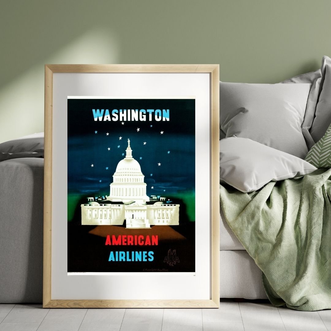 1950s Washington D.C. Travel Poster – Vintage American Airlines Ad, Retro Capital City Tourism Art, Mid-Century USA Airline Print