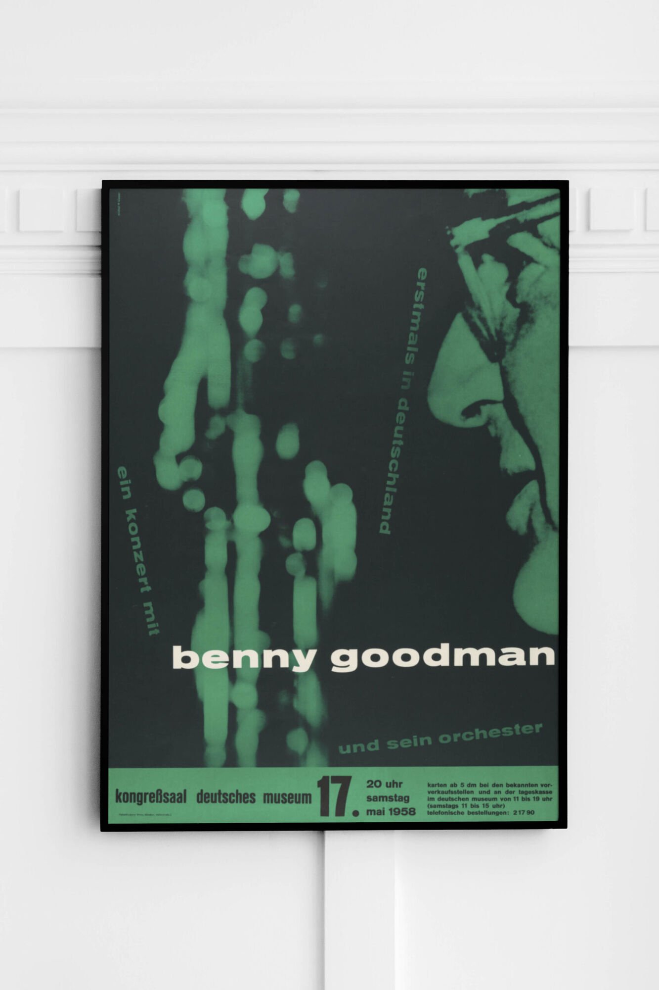 Vintage 1958 Benny Goodman Poster – Live Jazz Concert in Munich Germany Wall Art