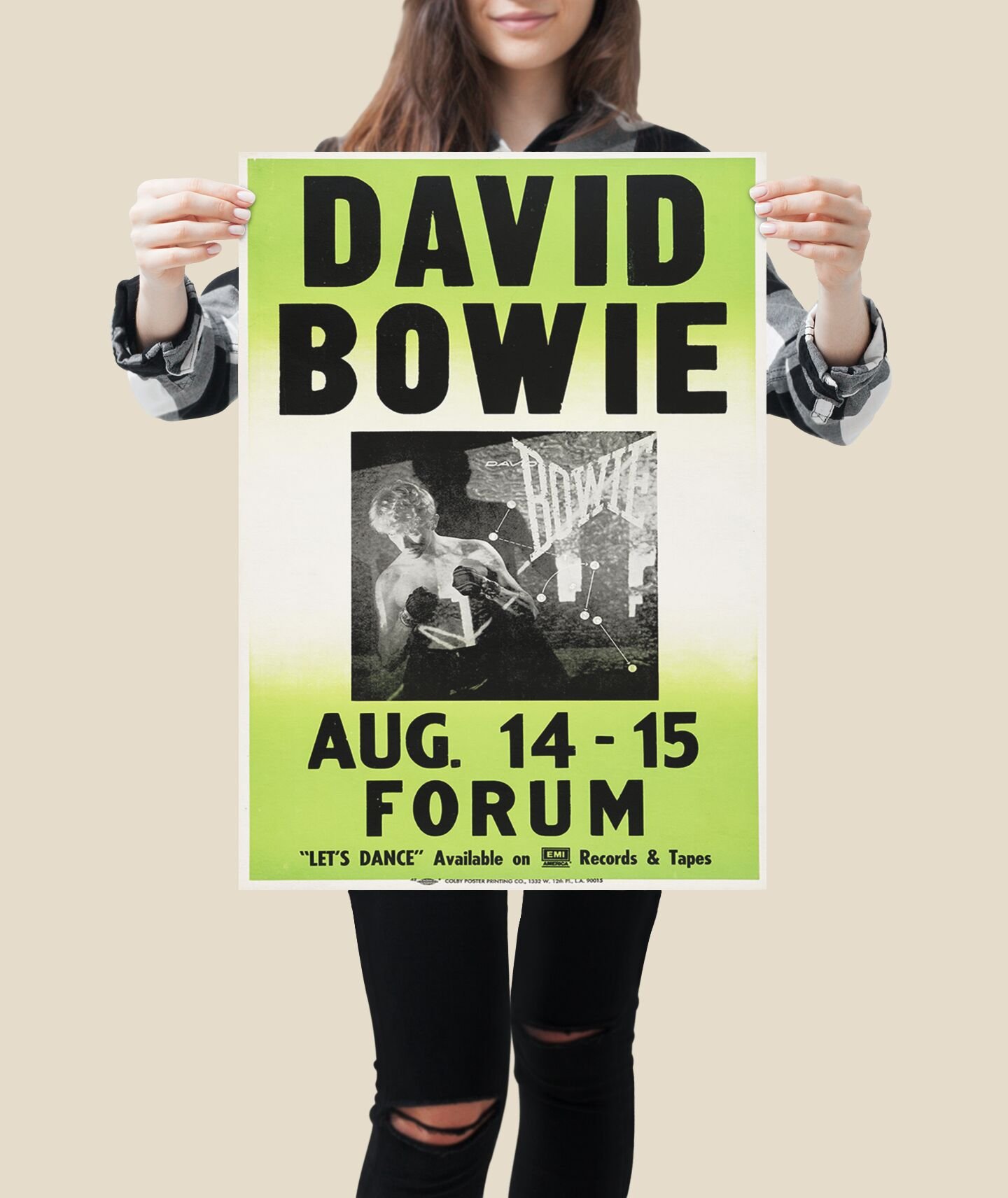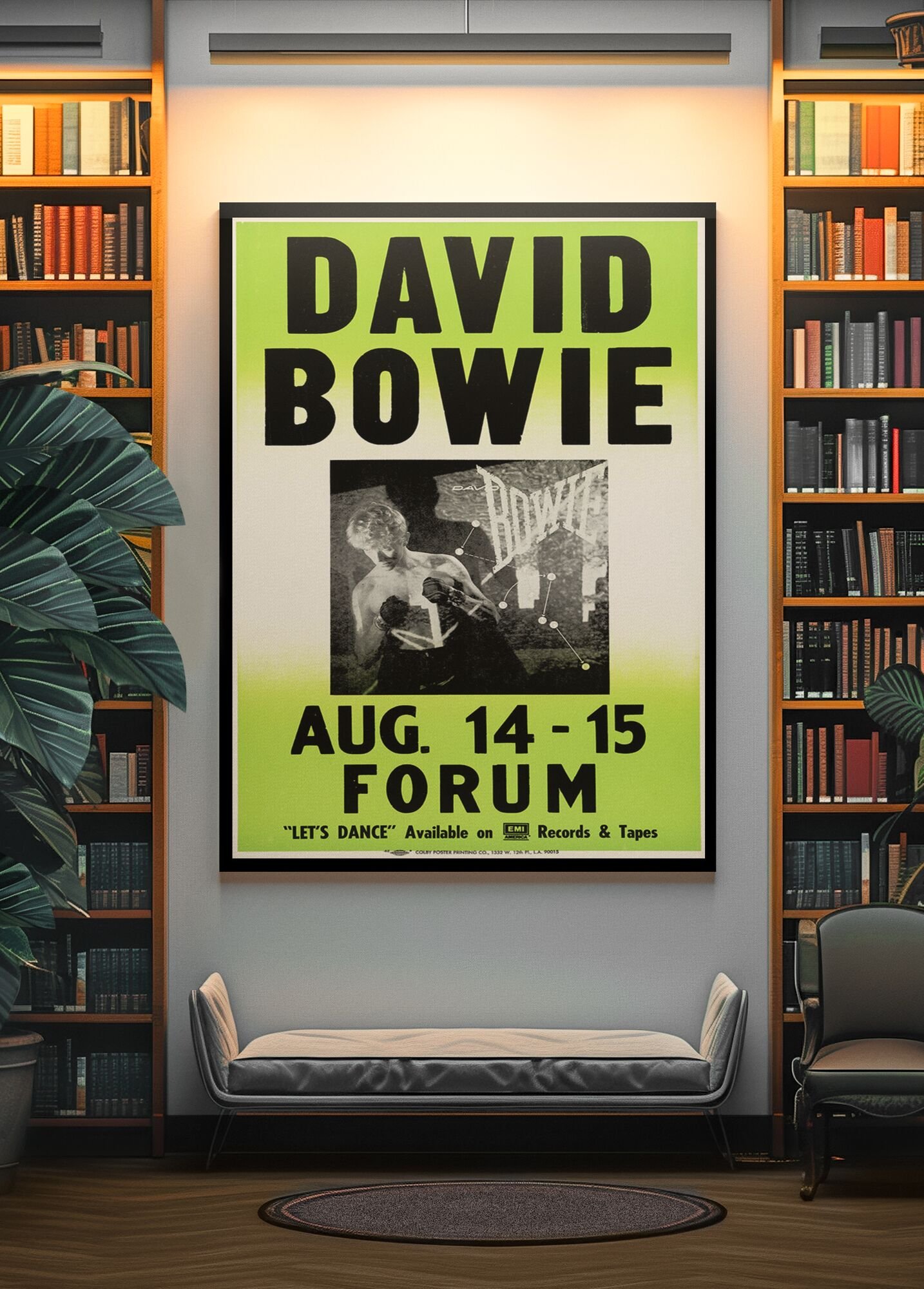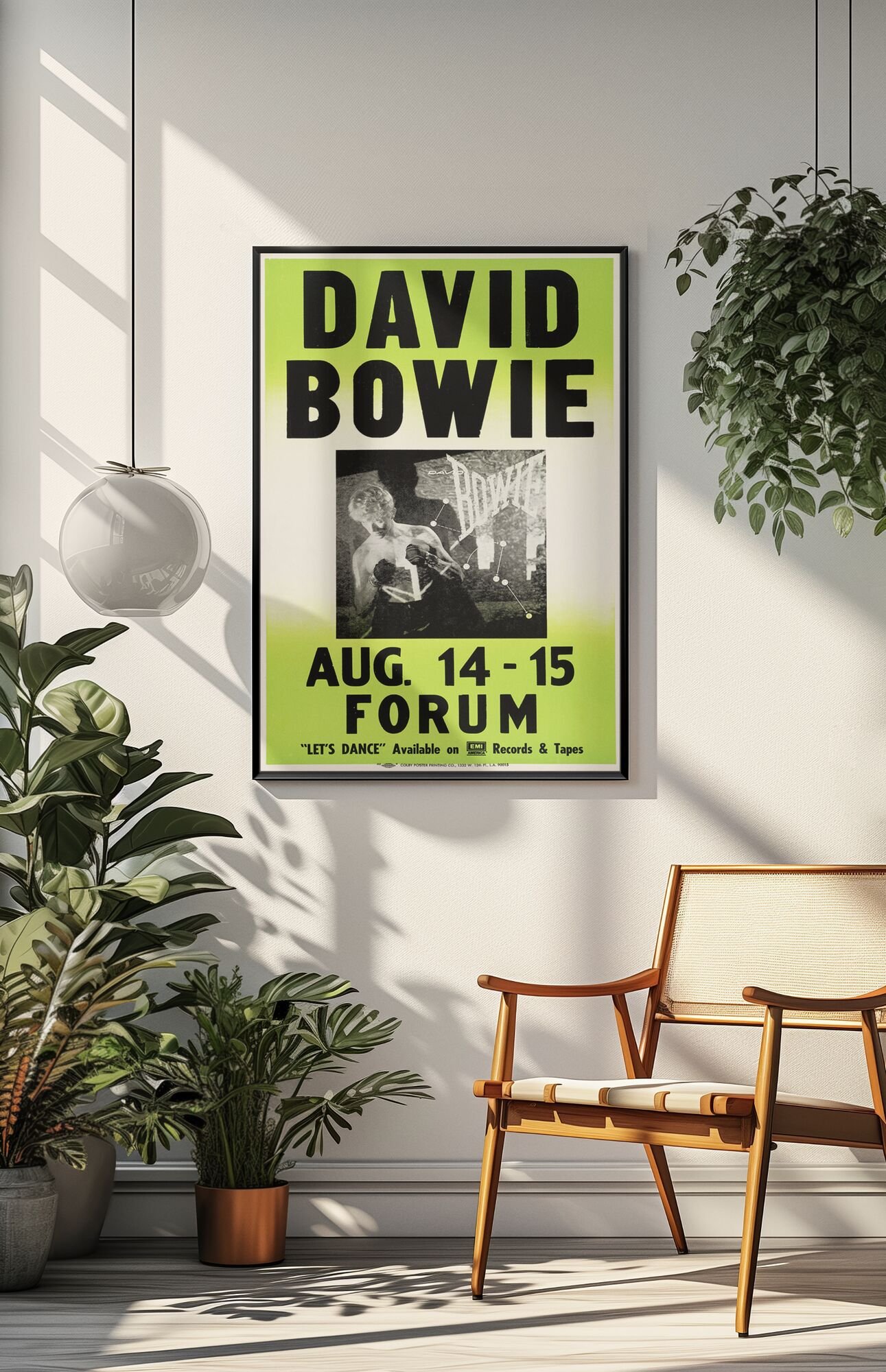 David Bowie 1983 Los Angeles Concert Poster – Inglewood Forum Serious Moonlight Tour Print, Vintage 80s Rock Icon Memorabilia