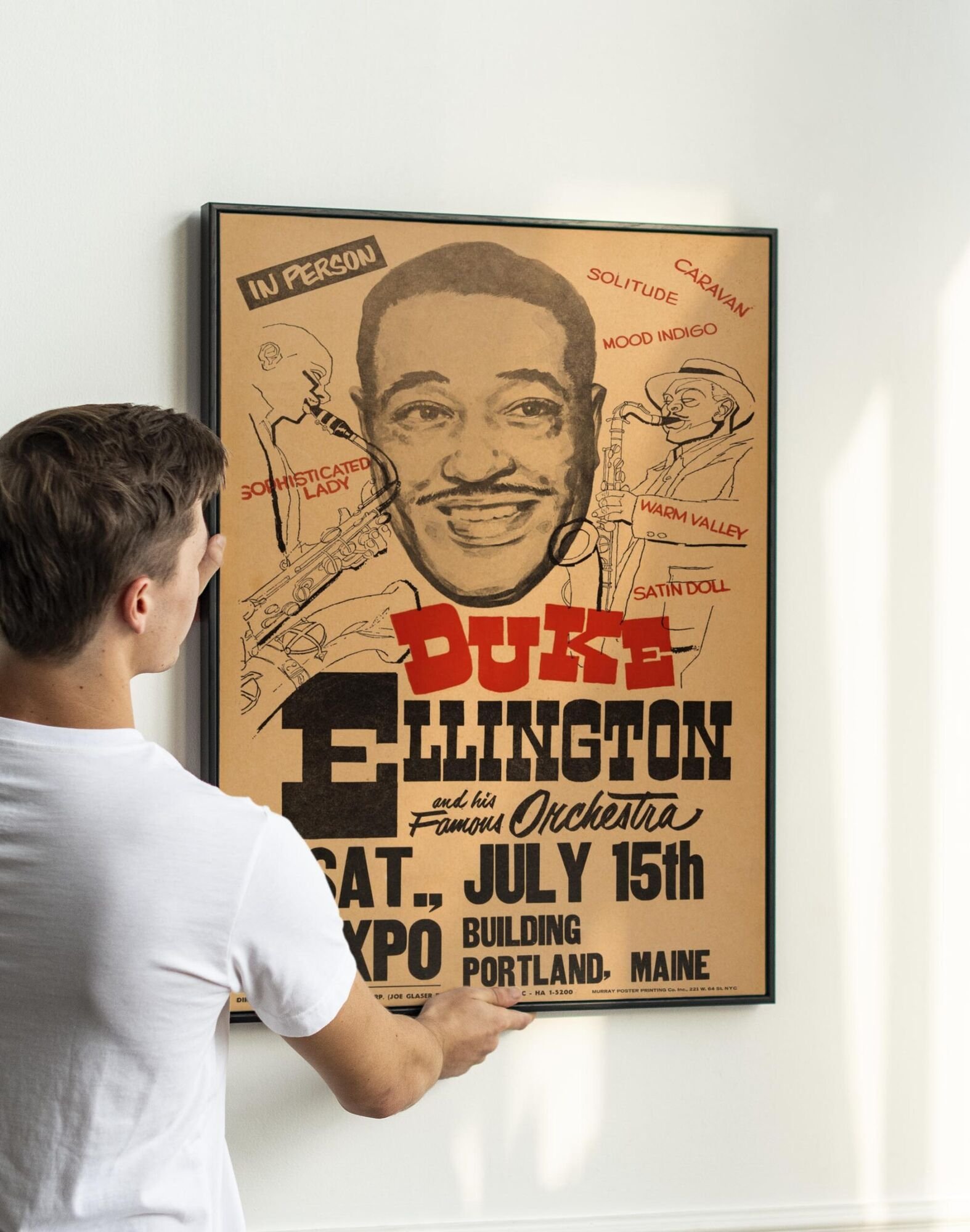 1967 Duke Ellington Poster – Vintage Portland, ME Jazz Concert Print, Big Band Swing Music Memorabilia