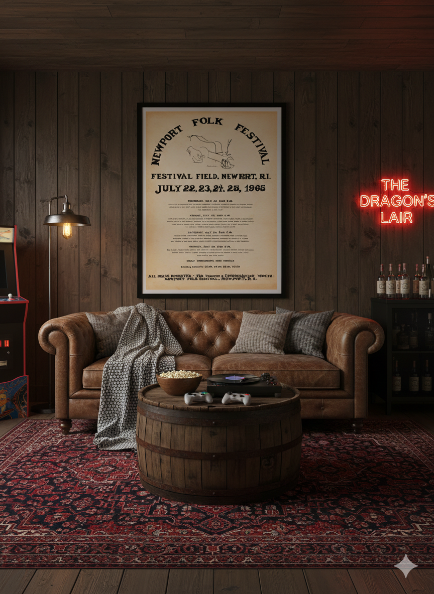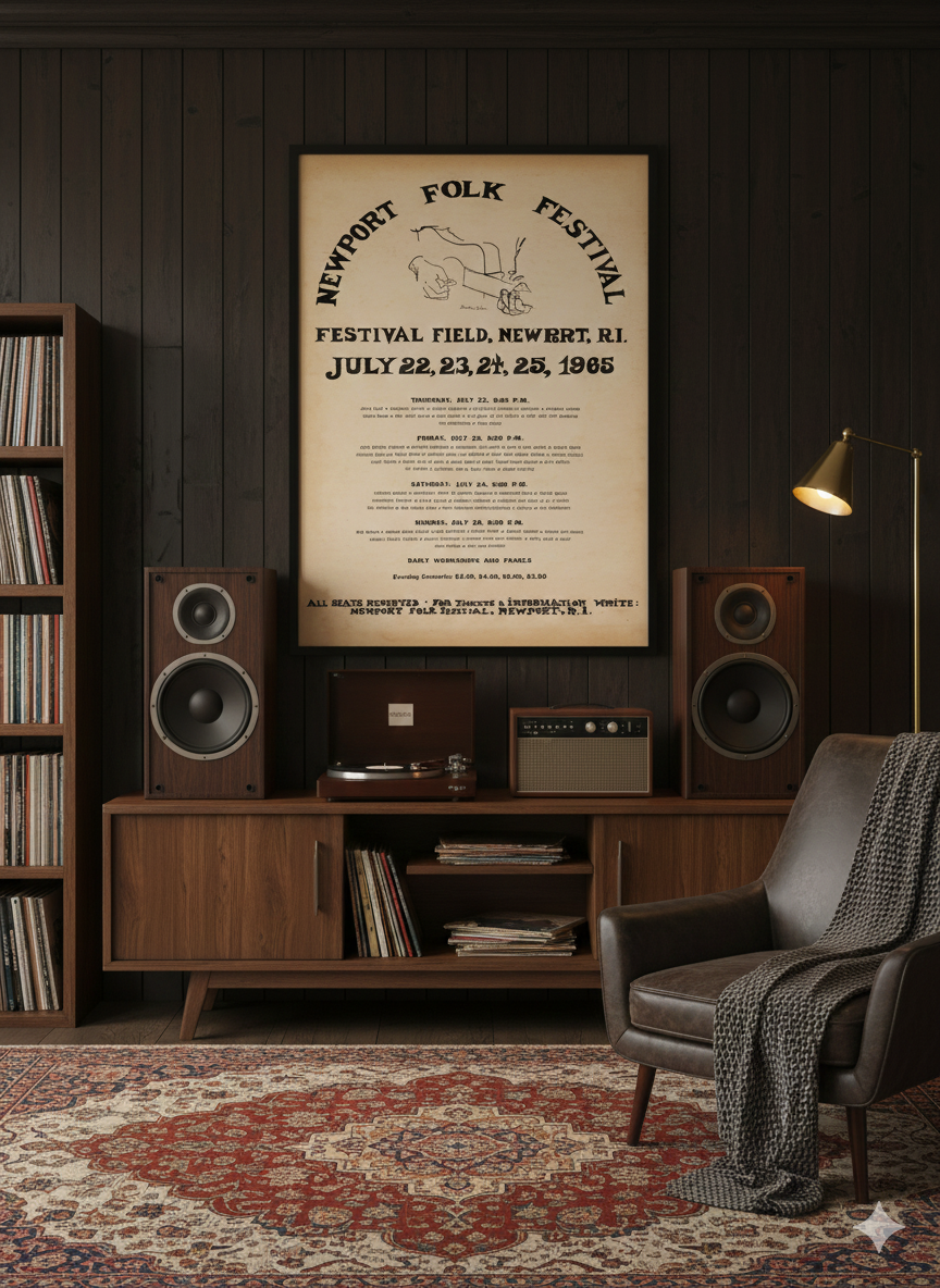 Vintage 1965 Bob Dylan Goes Electric Poster – Newport Folk Festival Concert Art