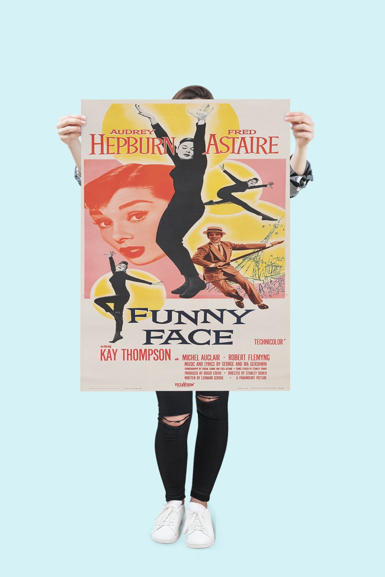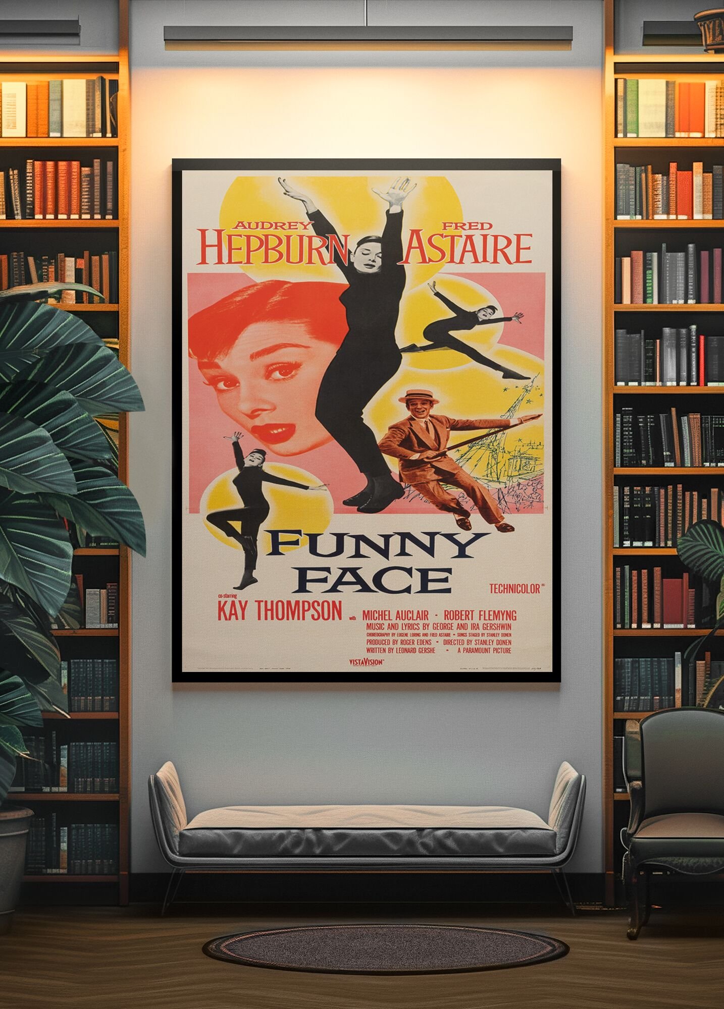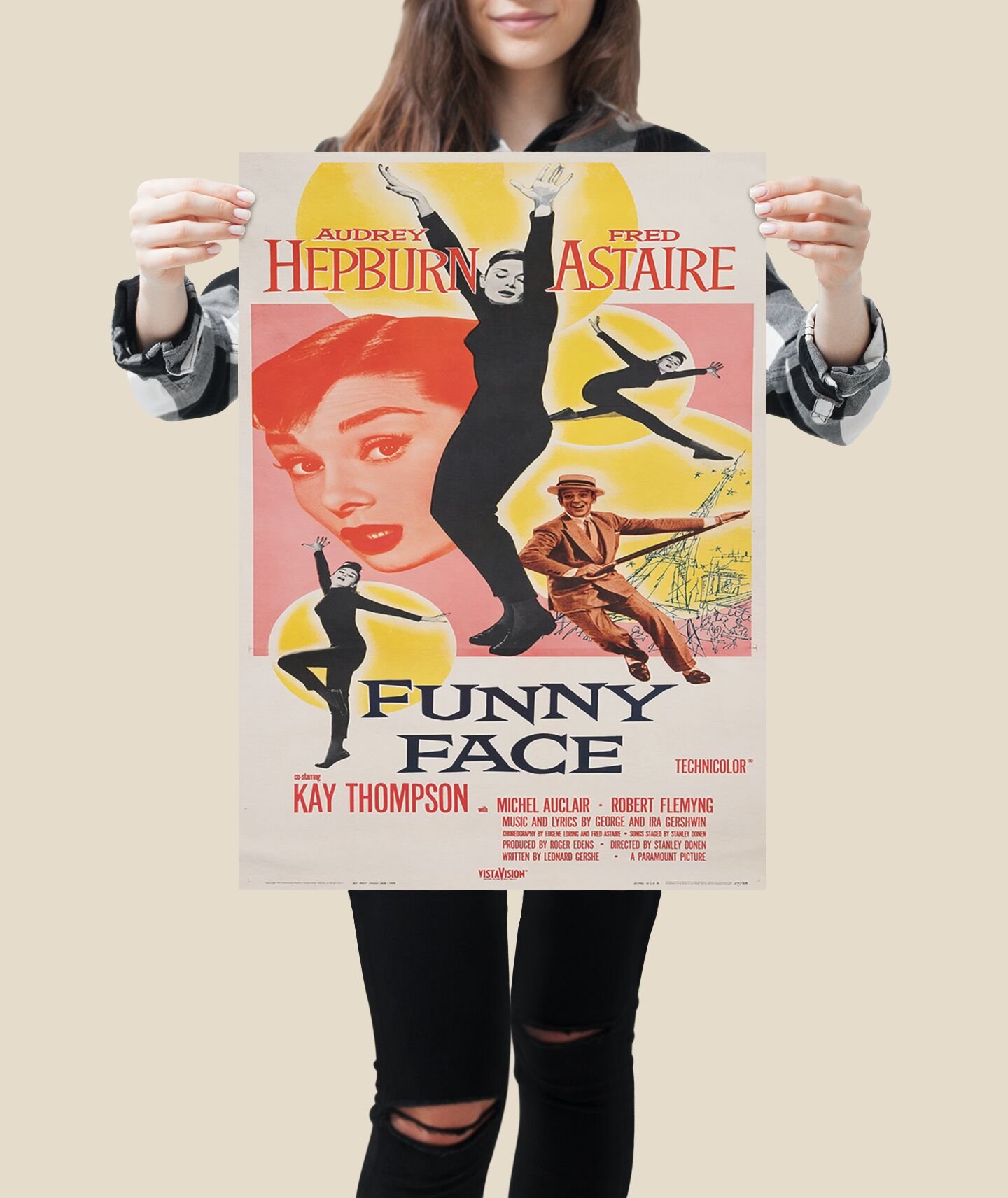 Funny Face 1957 Audrey Hepburn Poster – Vintage Musical Film Print with Fred Astaire, Classic Hollywood Glamour Wall Decor