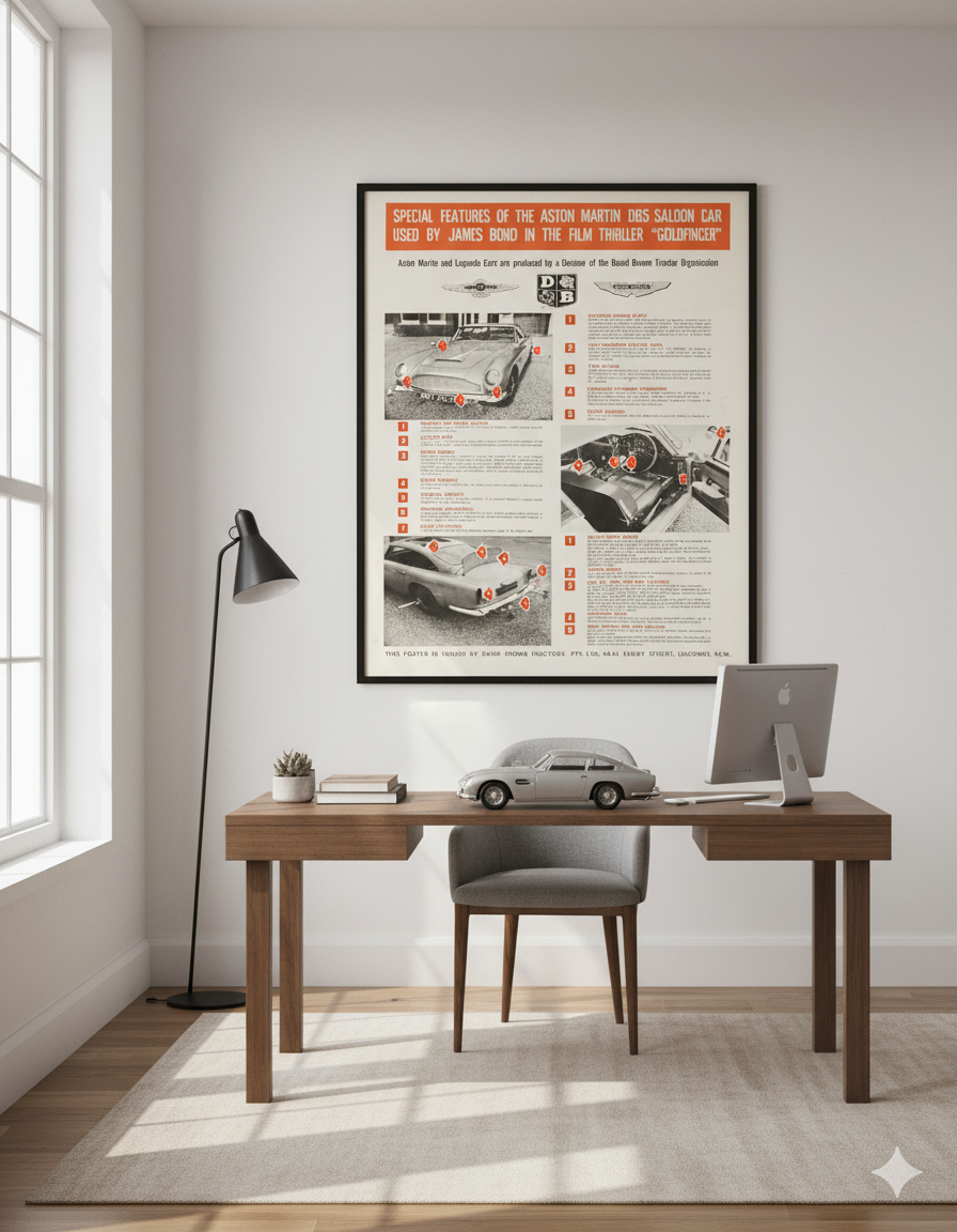 1964 Goldfinger James Bond Aston Martin DB5 Poster – Vintage Spy Film Memorabilia & Iconic 60s Promo Artwork
