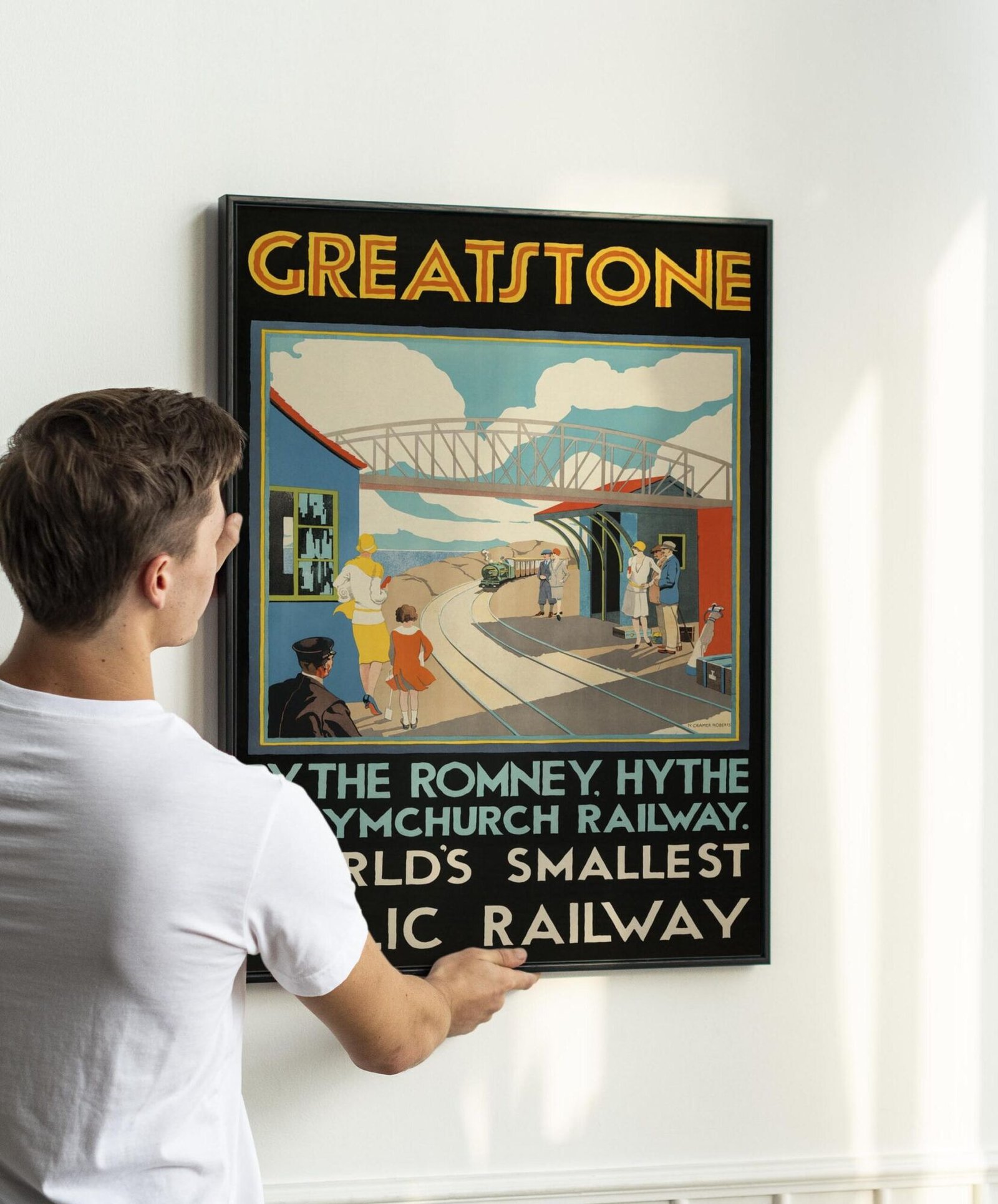 1929 Greatstone Railway Poster – Vintage British Travel Art Print Featuring World’s Smallest Public Railway