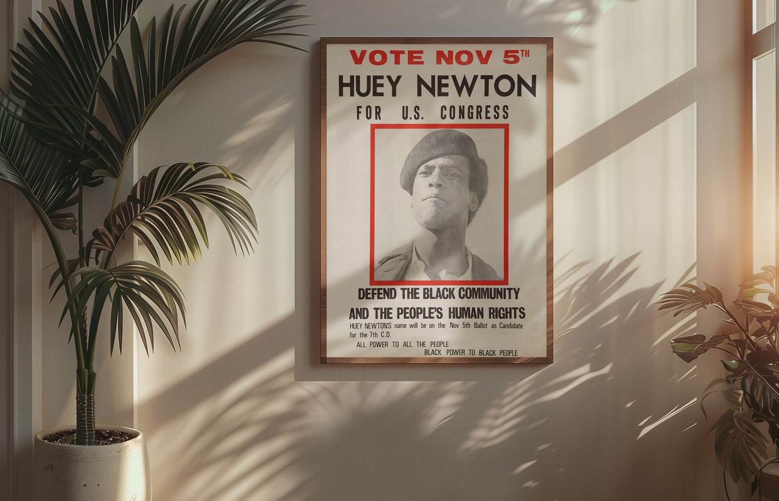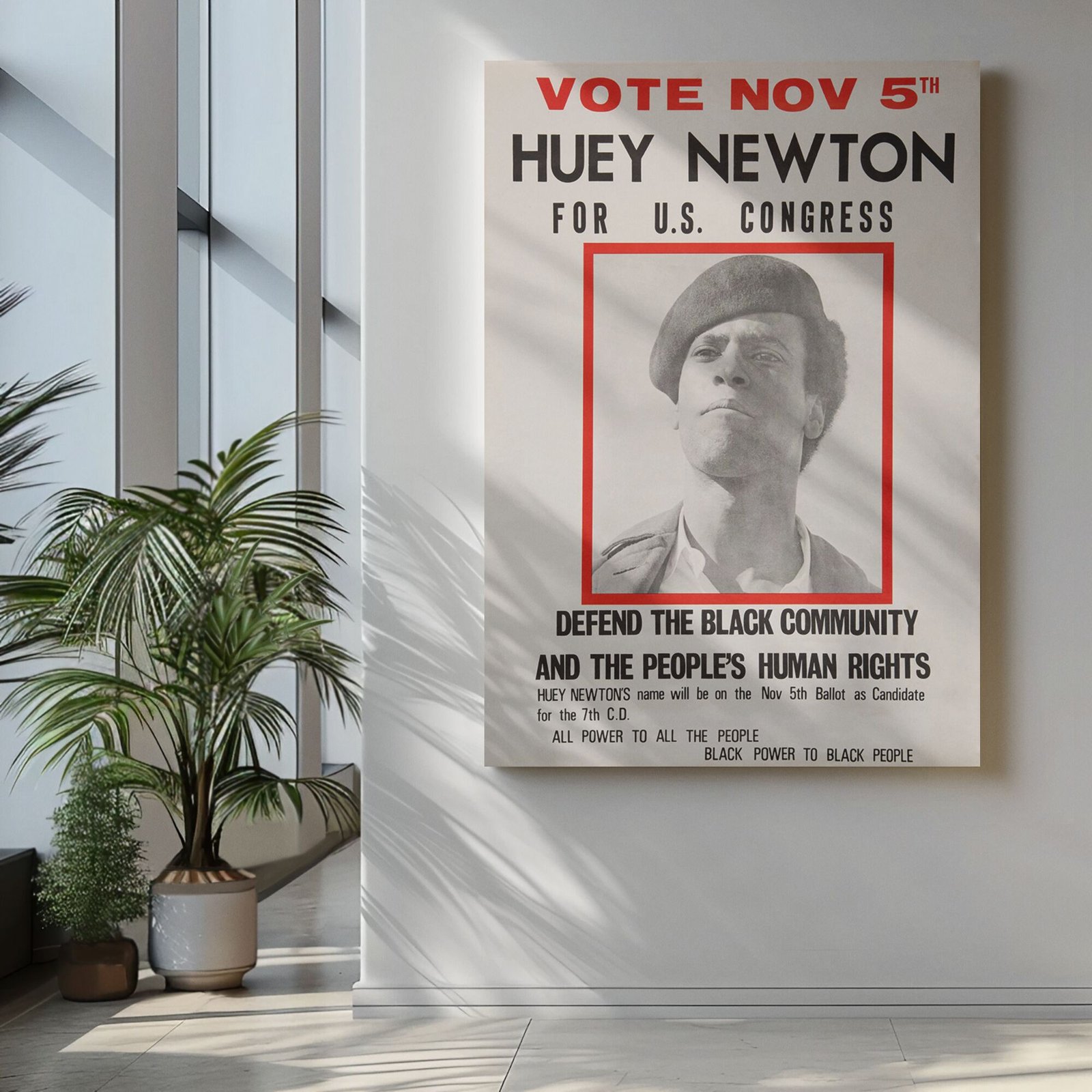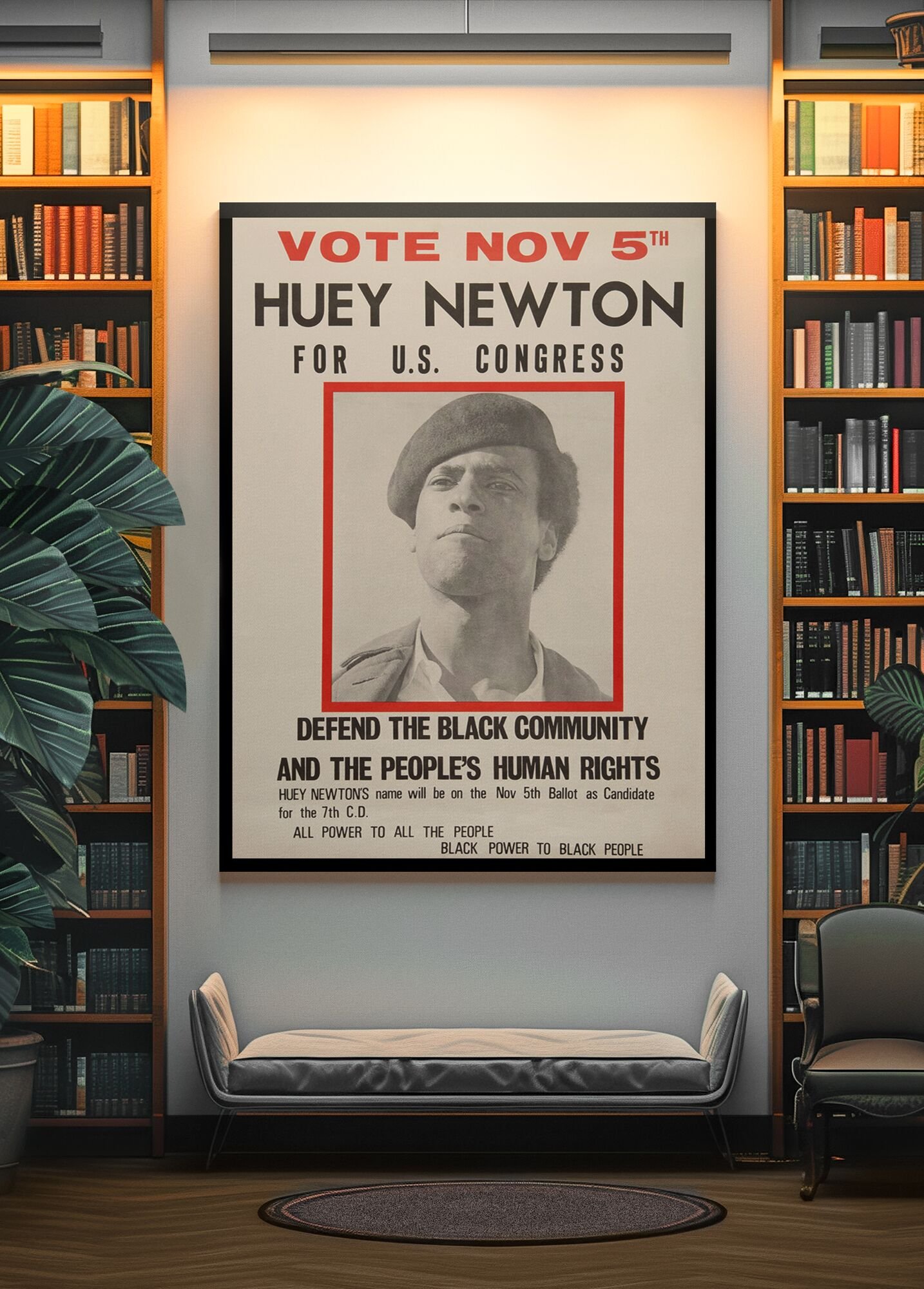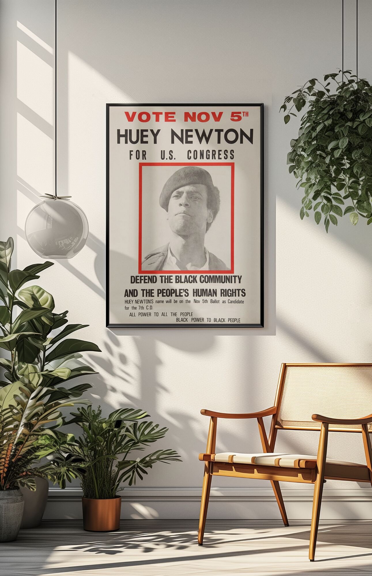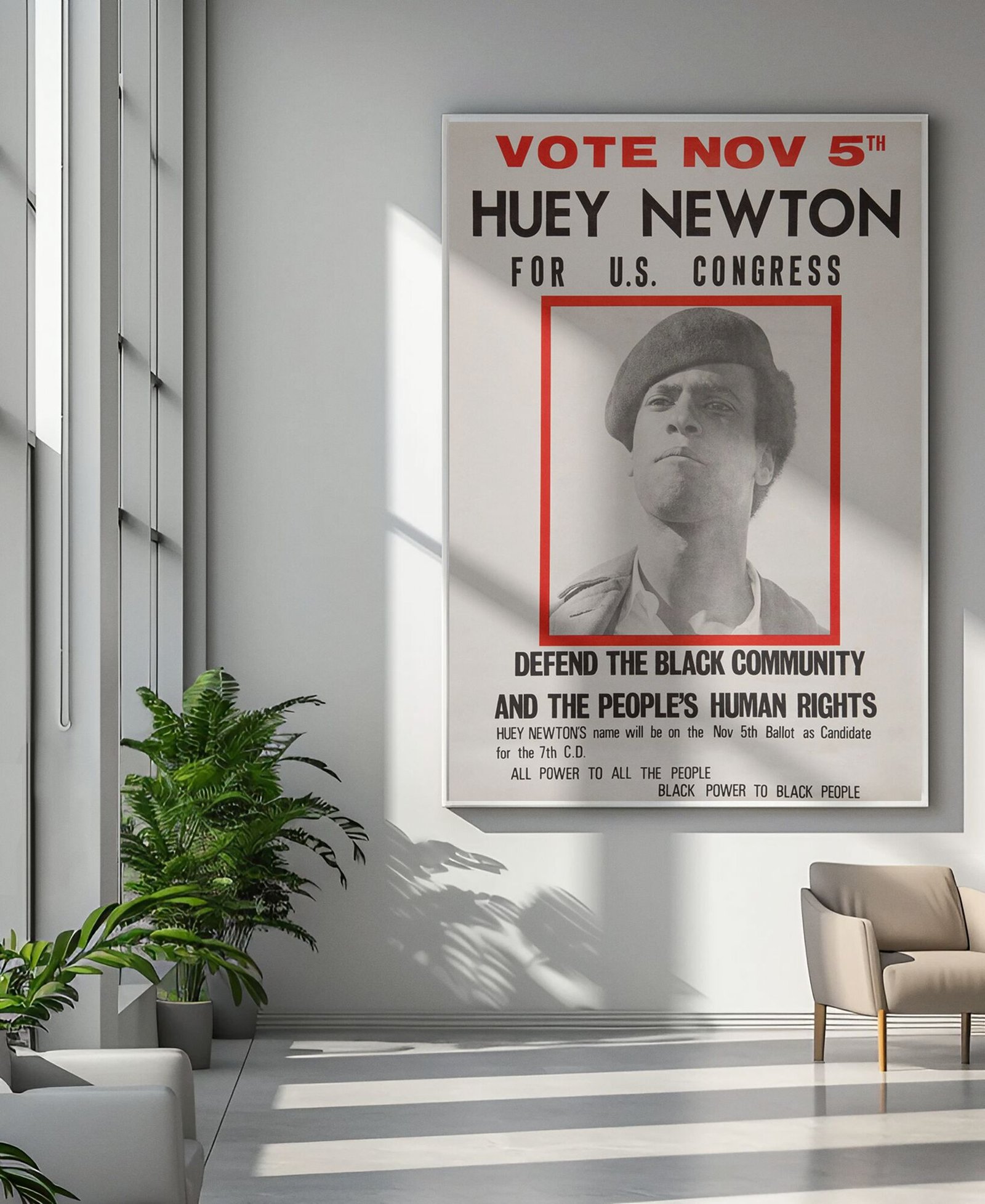 1968 Huey Newton for U.S. Congress Poster – Vintage 60s Civil Rights Movement and Political Activism Print