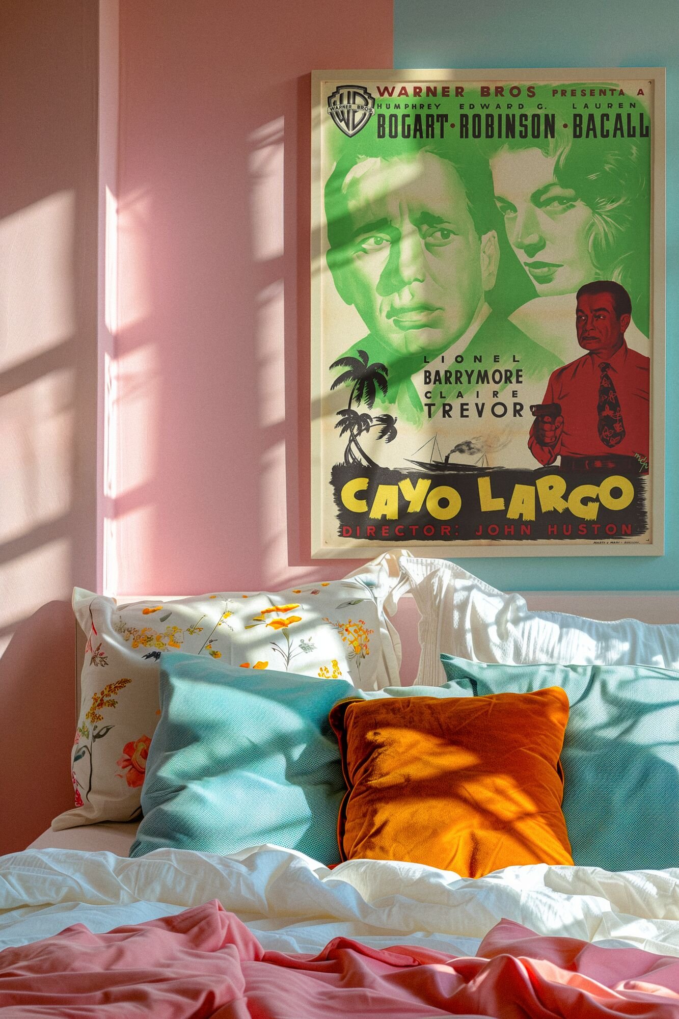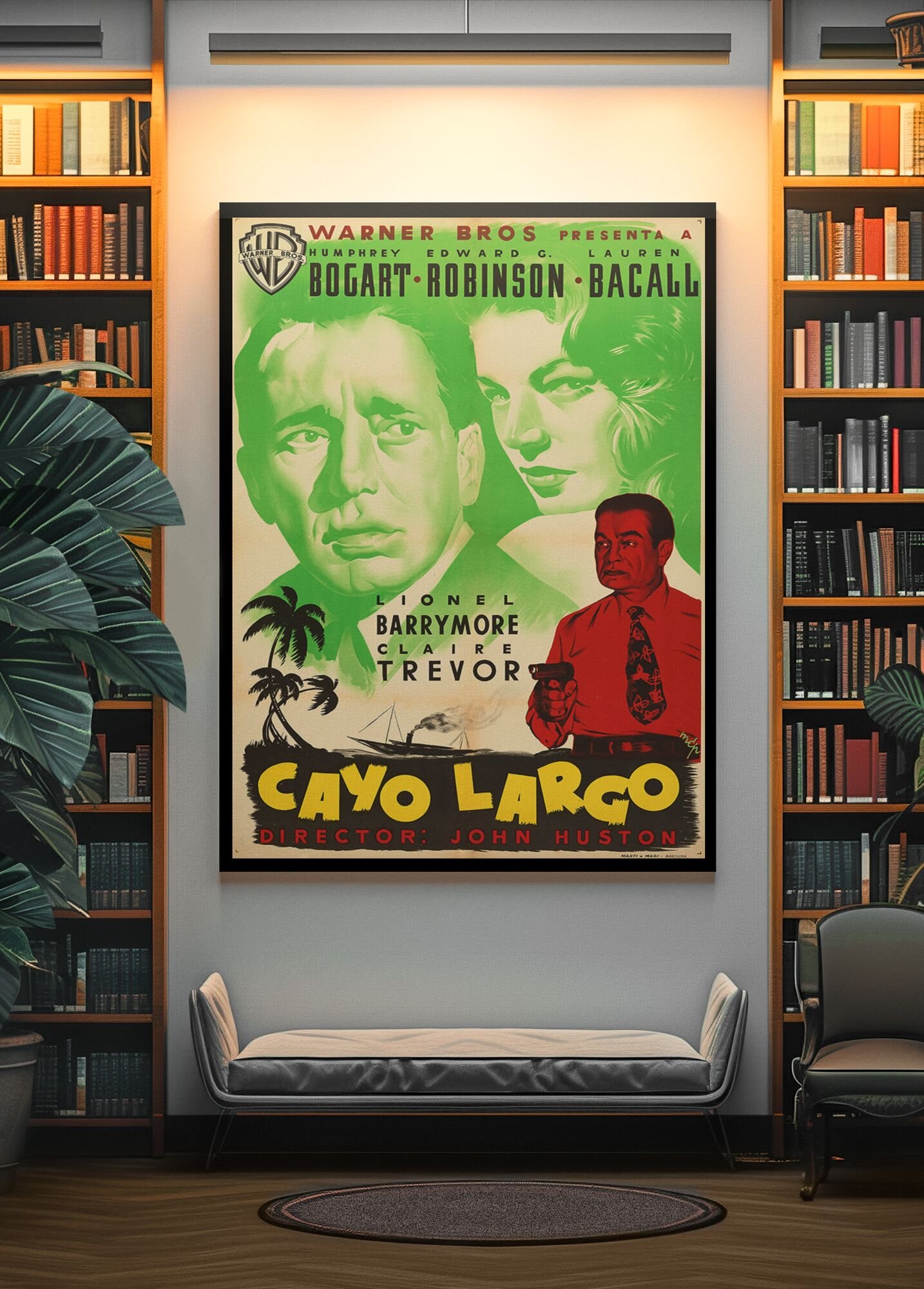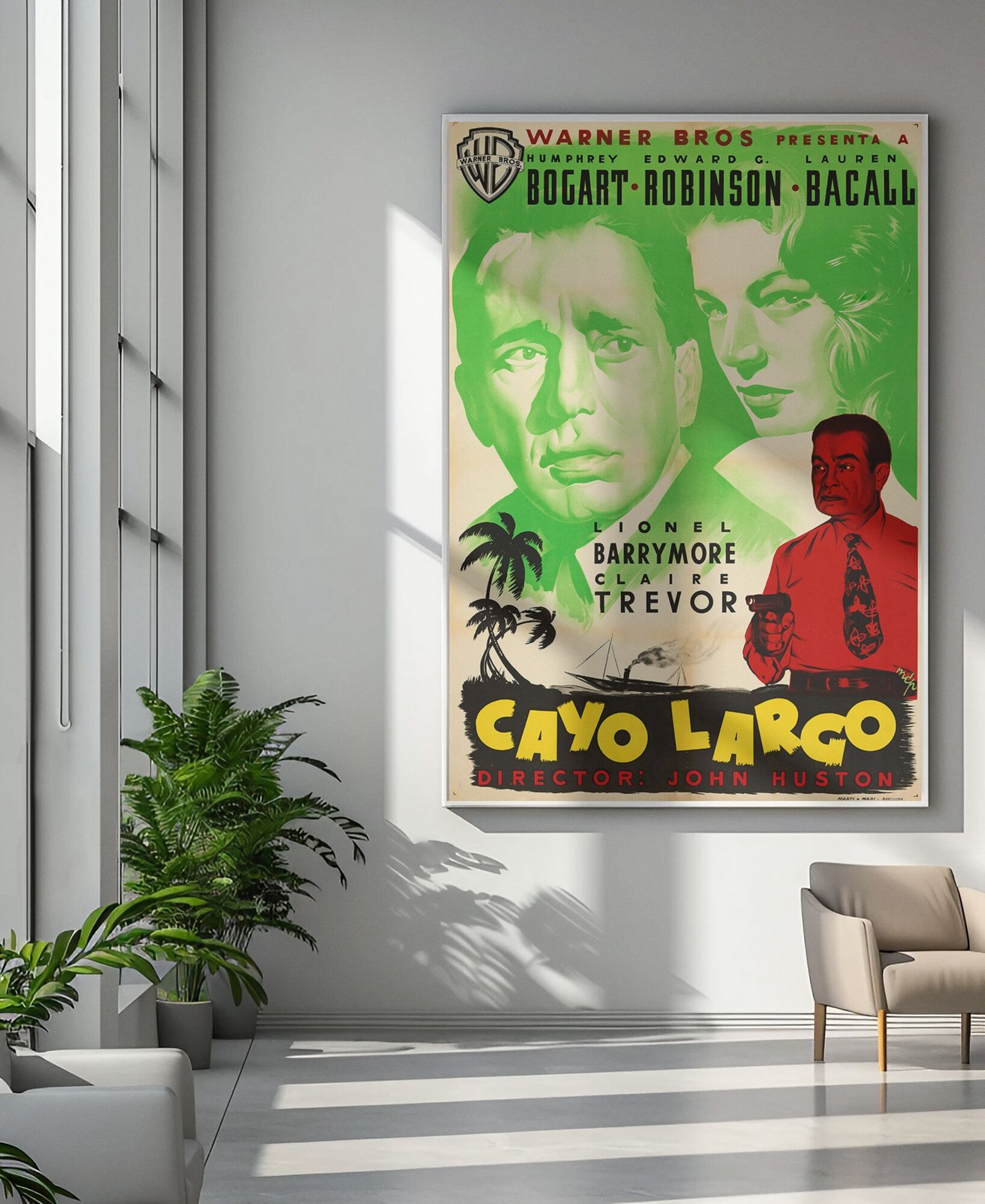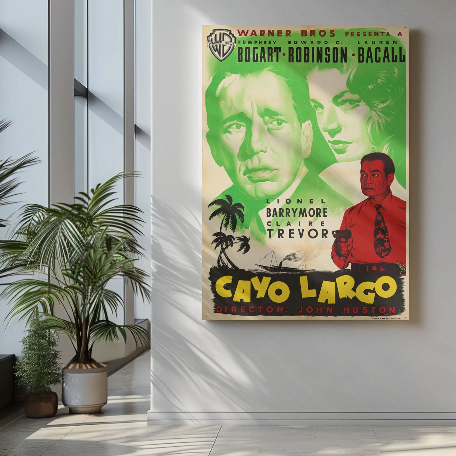 Key Largo 1948 Noir Movie Poster – Bogart & Bacall Crime Thriller Print, Vintage Gangster Drama, Classic Hollywood Collectible
