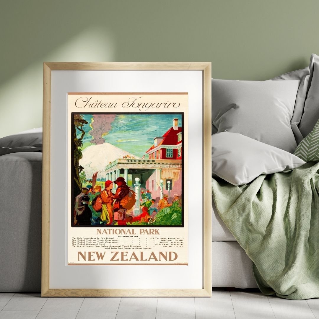 1930s New Zealand Poster – Vintage Travel Advertisement Art, Retro Oceania Tourism Print, Scenic Landscape Decor