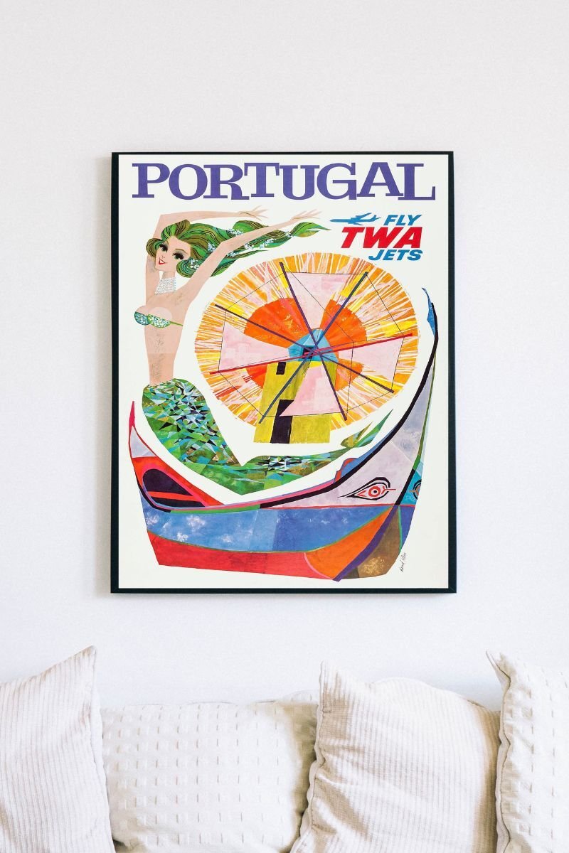 1950s Pan Am Airlines Poster – Vintage Portugal Travel Advertisement, Retro Mid-Century European Tourism Art, Jet Age Aviation Print