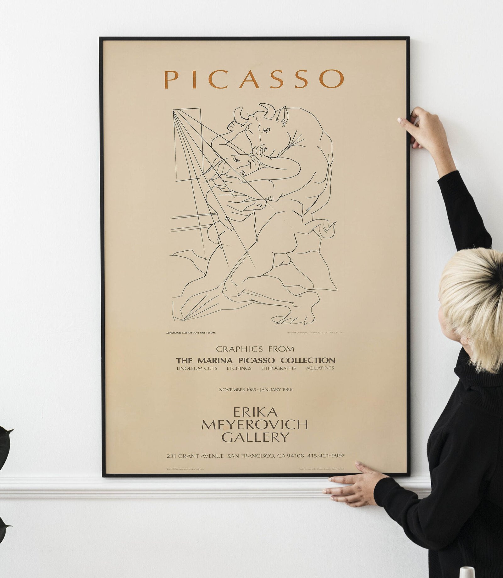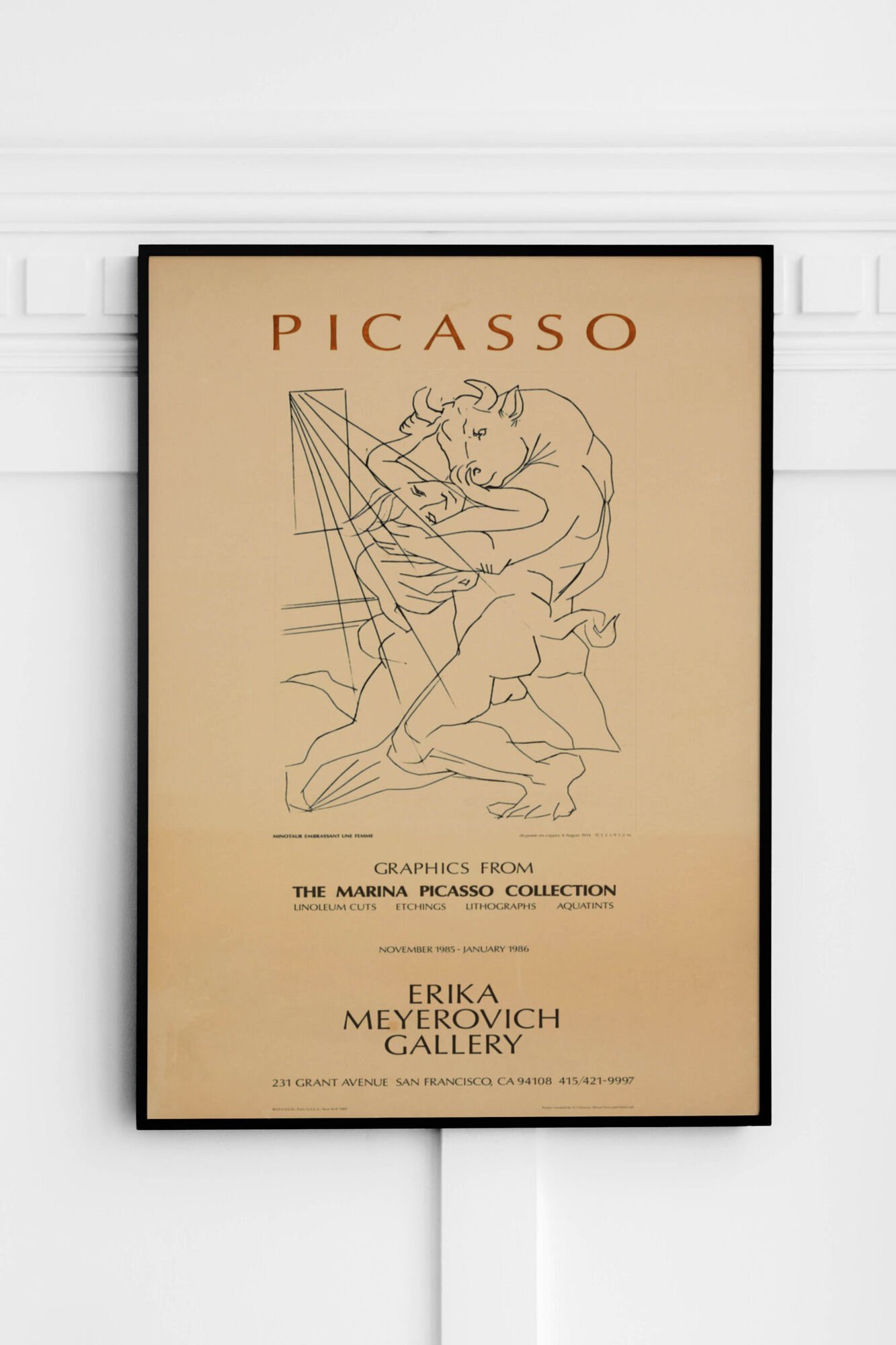 1985 Picasso Exhibition Poster – Vintage Erika Meyerovich Gallery Art Show Print for Modern Art Collectors