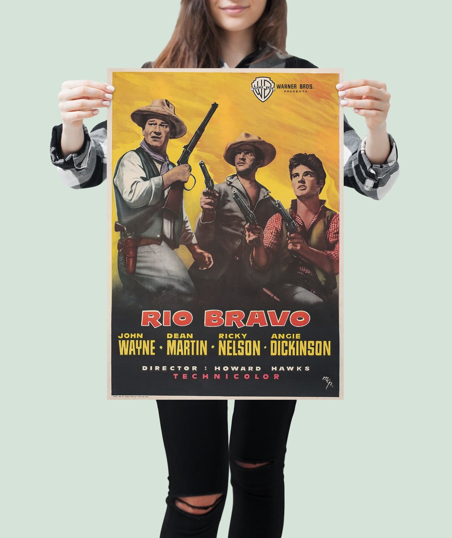 Vintage Rio Bravo Poster 1959 – John Wayne, Dean Martin, Howard Hawks Western Film Collectible