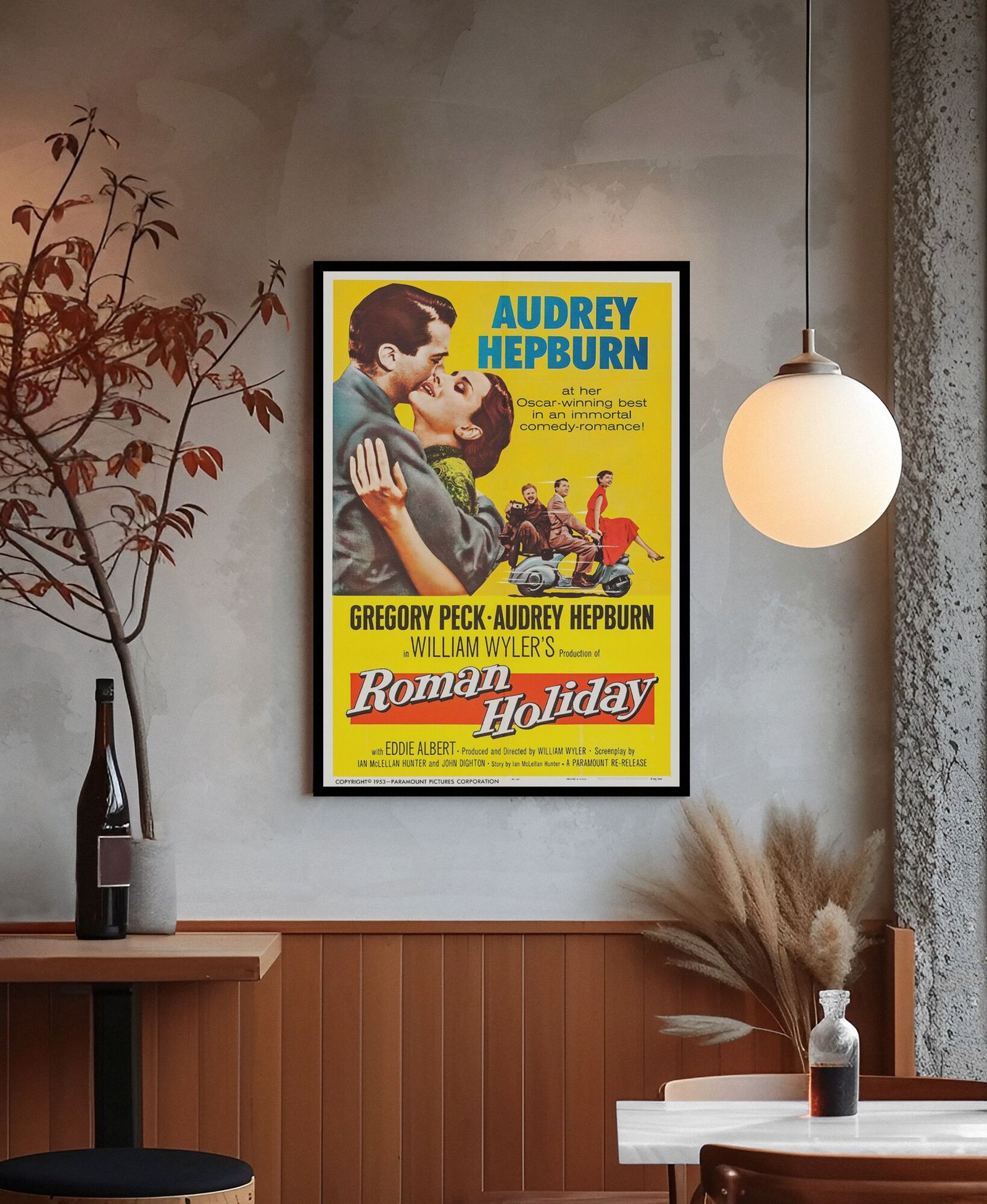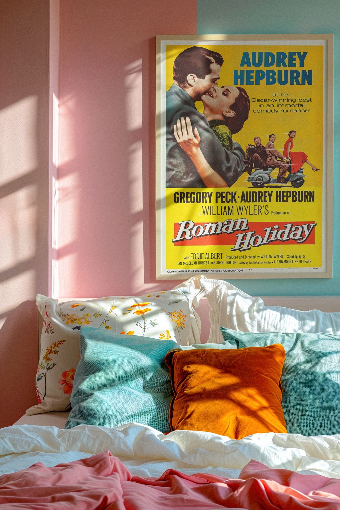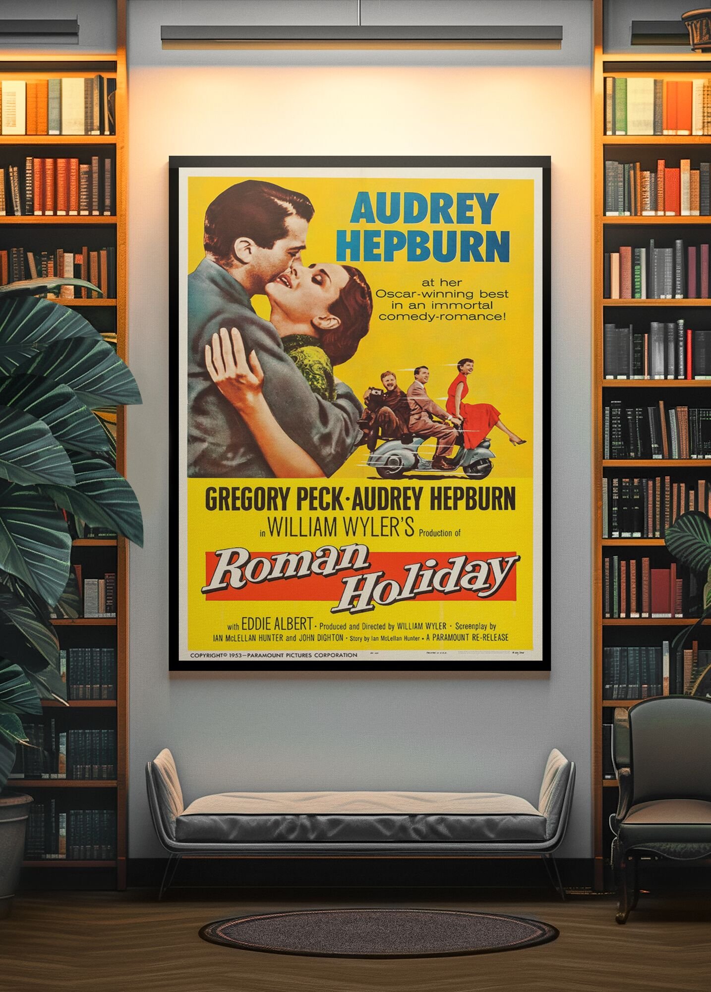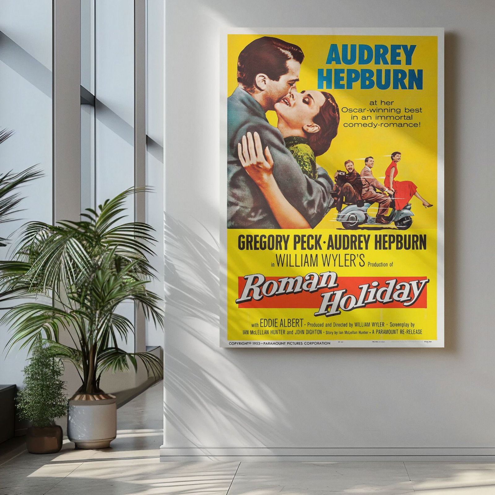 Roman Holiday 1953 Movie Poster – Audrey Hepburn & Gregory Peck, Directed by William Wyler, Romantic Classic Film Print