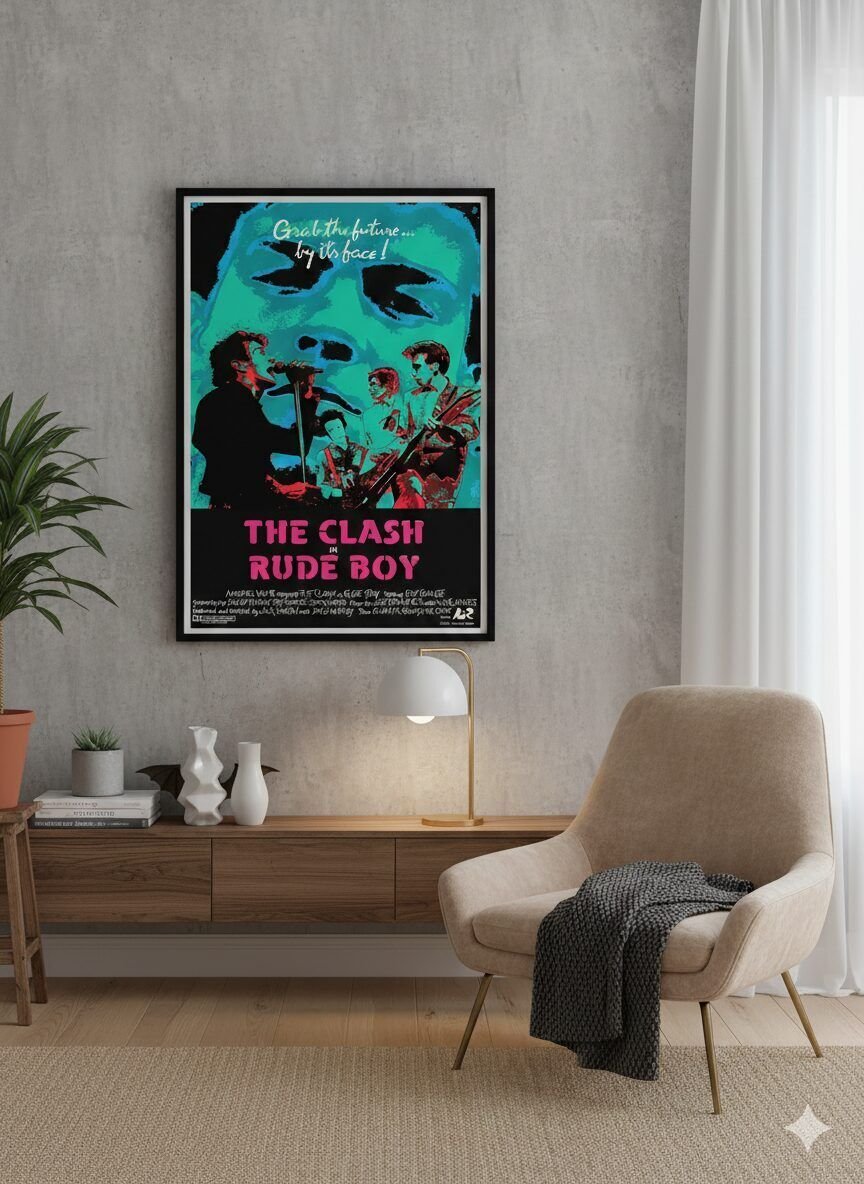 1980 Rude Boy poster featuring The Clash, a punk rock documentary that captured the energy, rebellion, and raw power of one of Britain’s most influential bands. A rare vintage collectible.