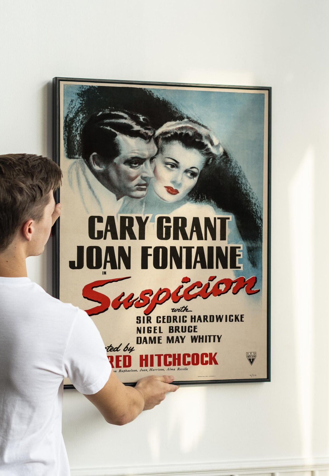 Suspicion 1941 Movie Poster – Classic RKO Thriller Starring Cary Grant and Joan Fontaine, Directed by Alfred Hitchcock