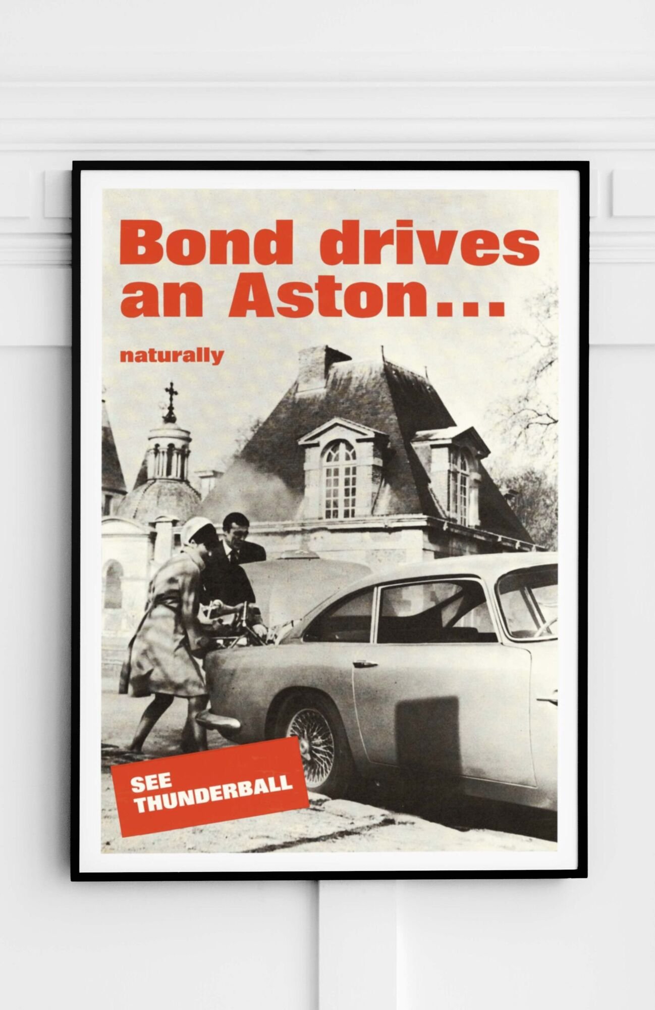 Bond Drives Aston 1965 James Bond Sean Connery, Thunderball Promotional Poster Aston Martin DB5