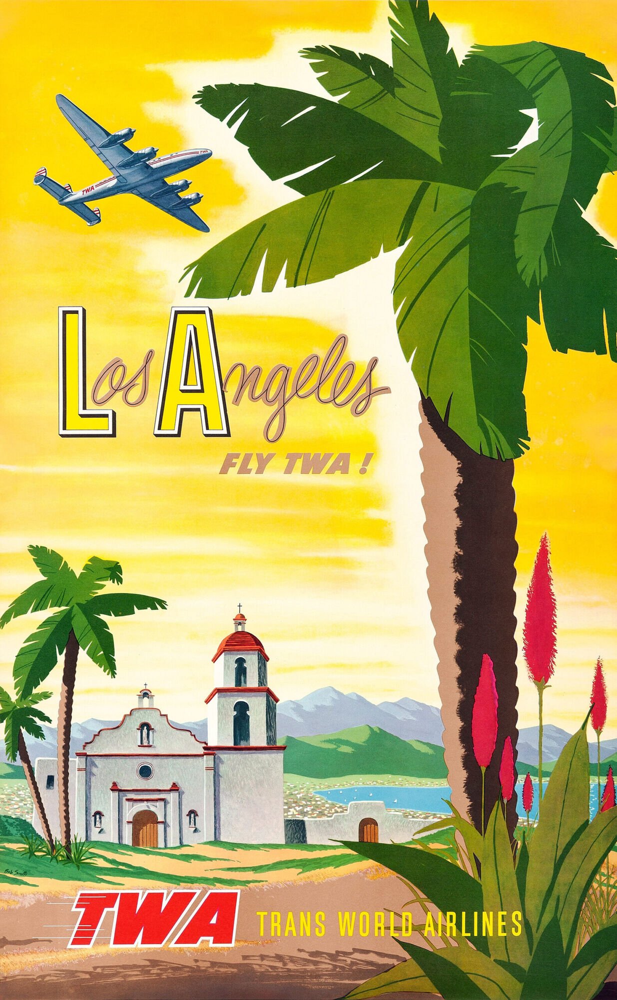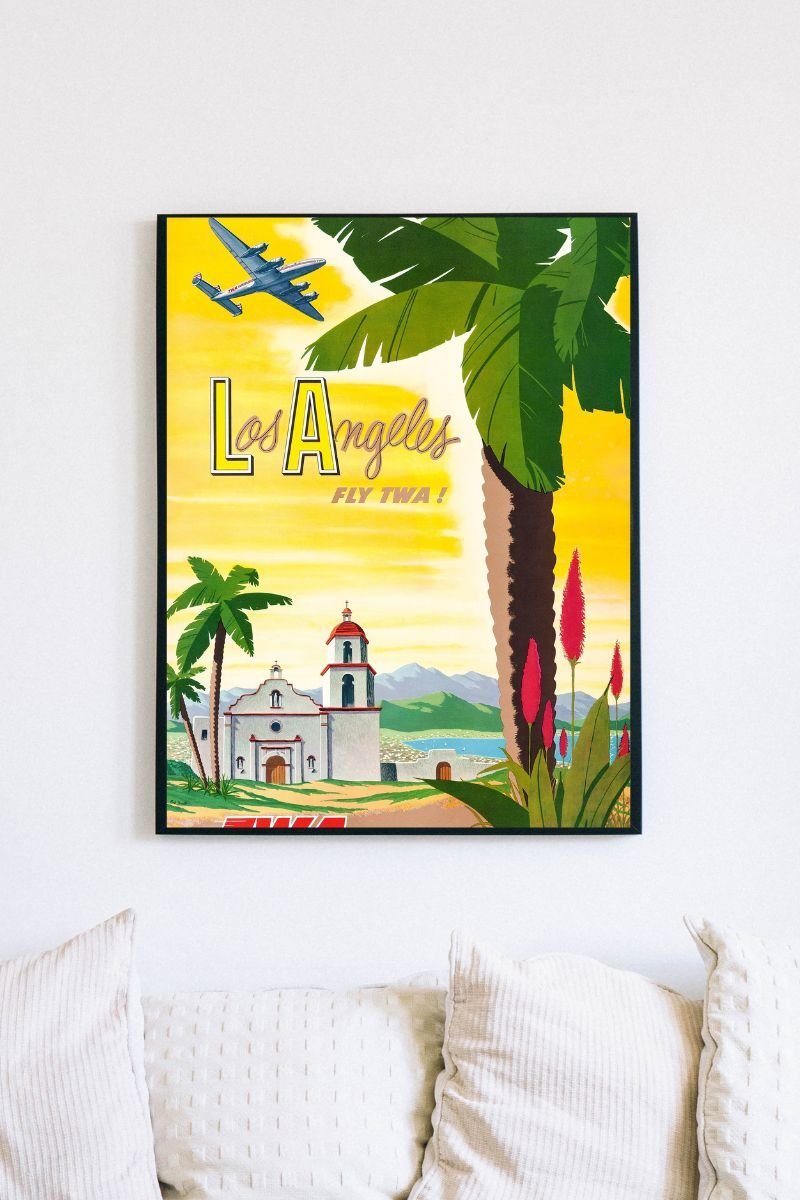 Vintage TWA Airlines Travel Poster – Classic Los Angeles California Tourism Print Featuring Mid-Century Airline Art