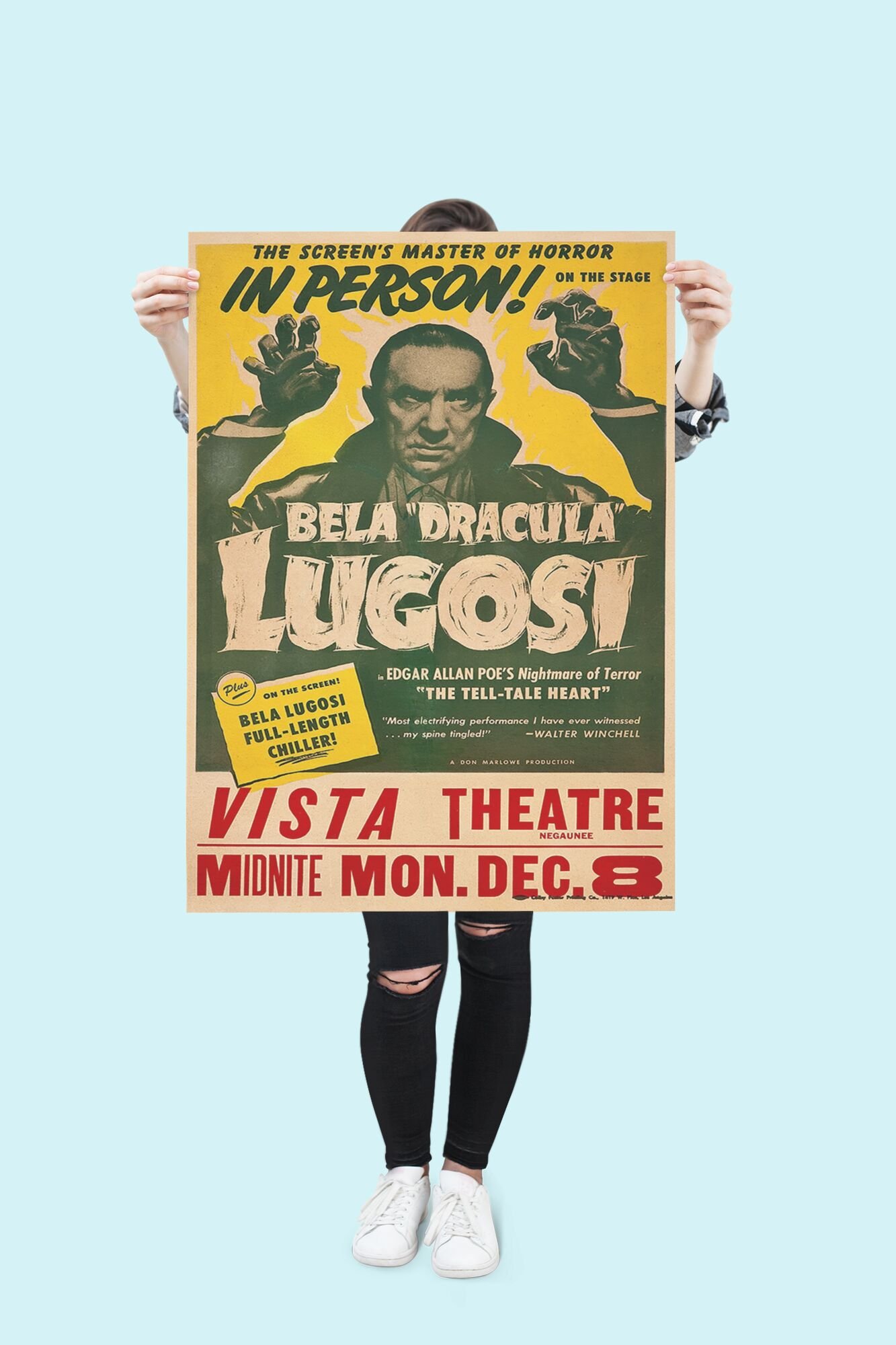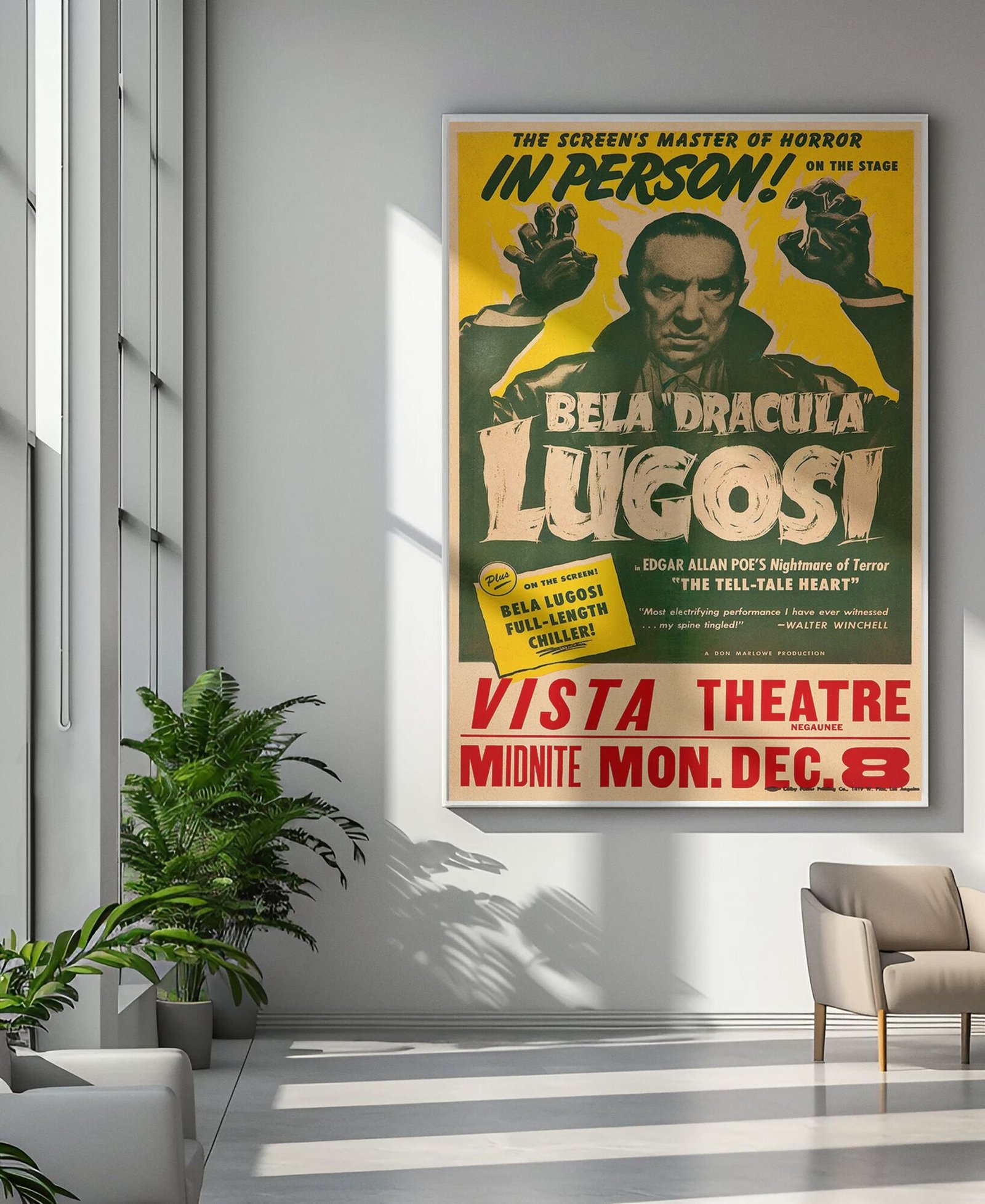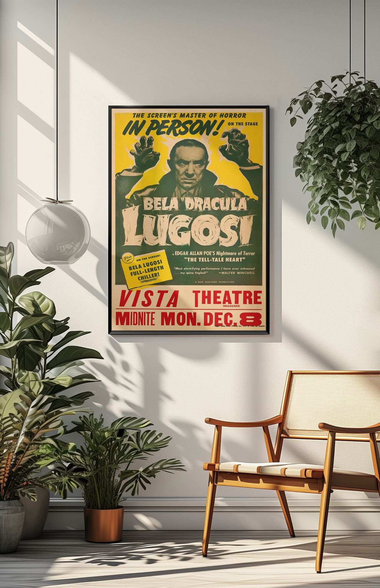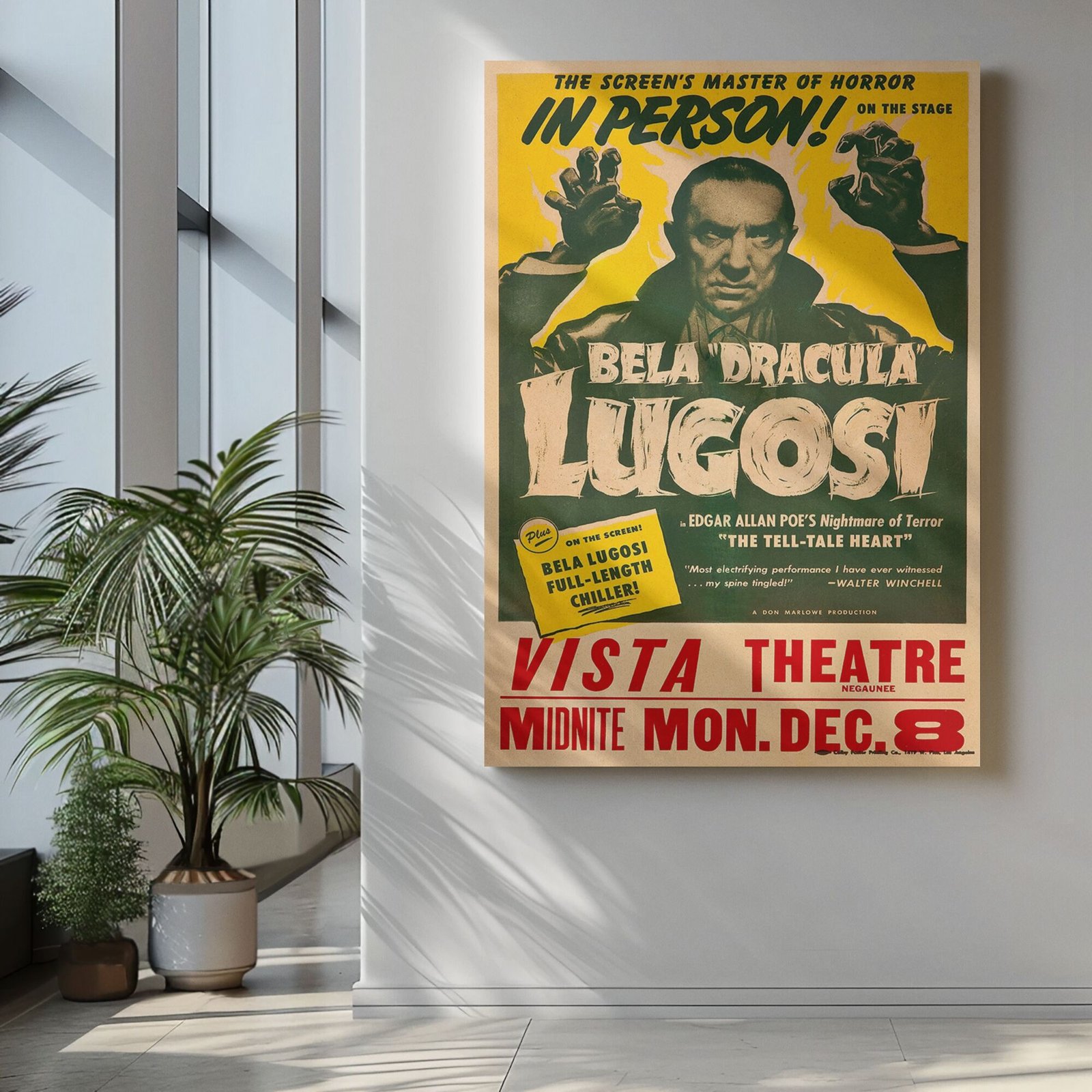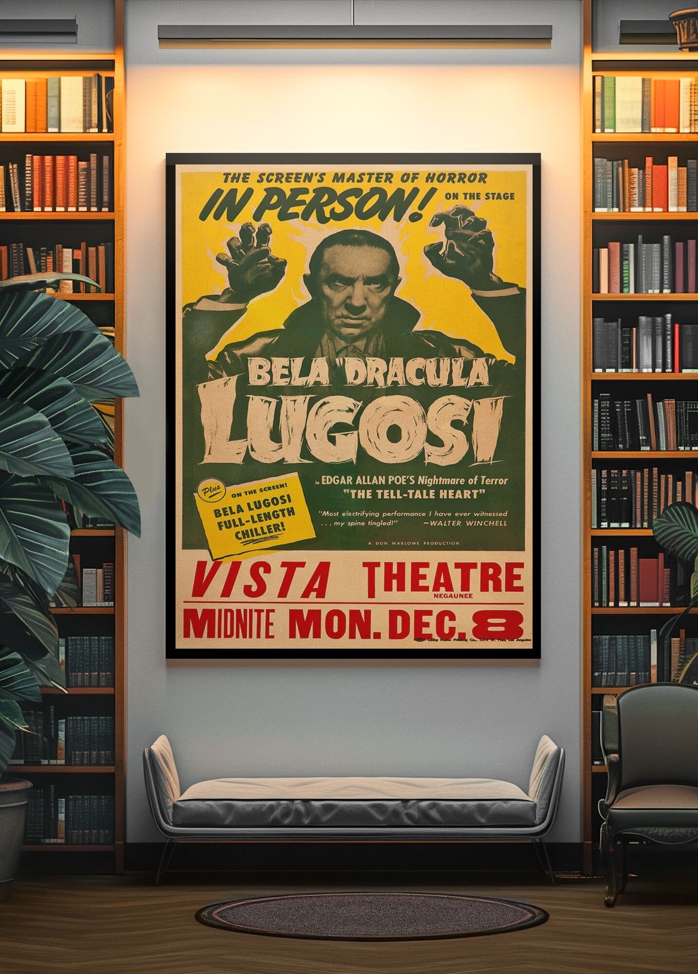 Retro 1940s Horror Wall Art – Bela Lugosi in The Tell-Tale Heart, Vintage Gothic Poe Poster for Classic Film Fans