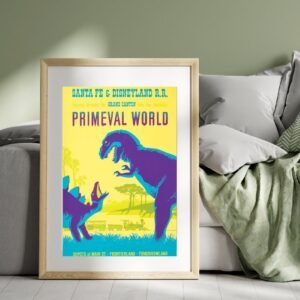 Disneyland Primeval World Dinosaur Poster – Vintage Theme Park Attraction Print, Retro Dino Ride Art, 1960s Disneyland Memorabilia Wall Decor