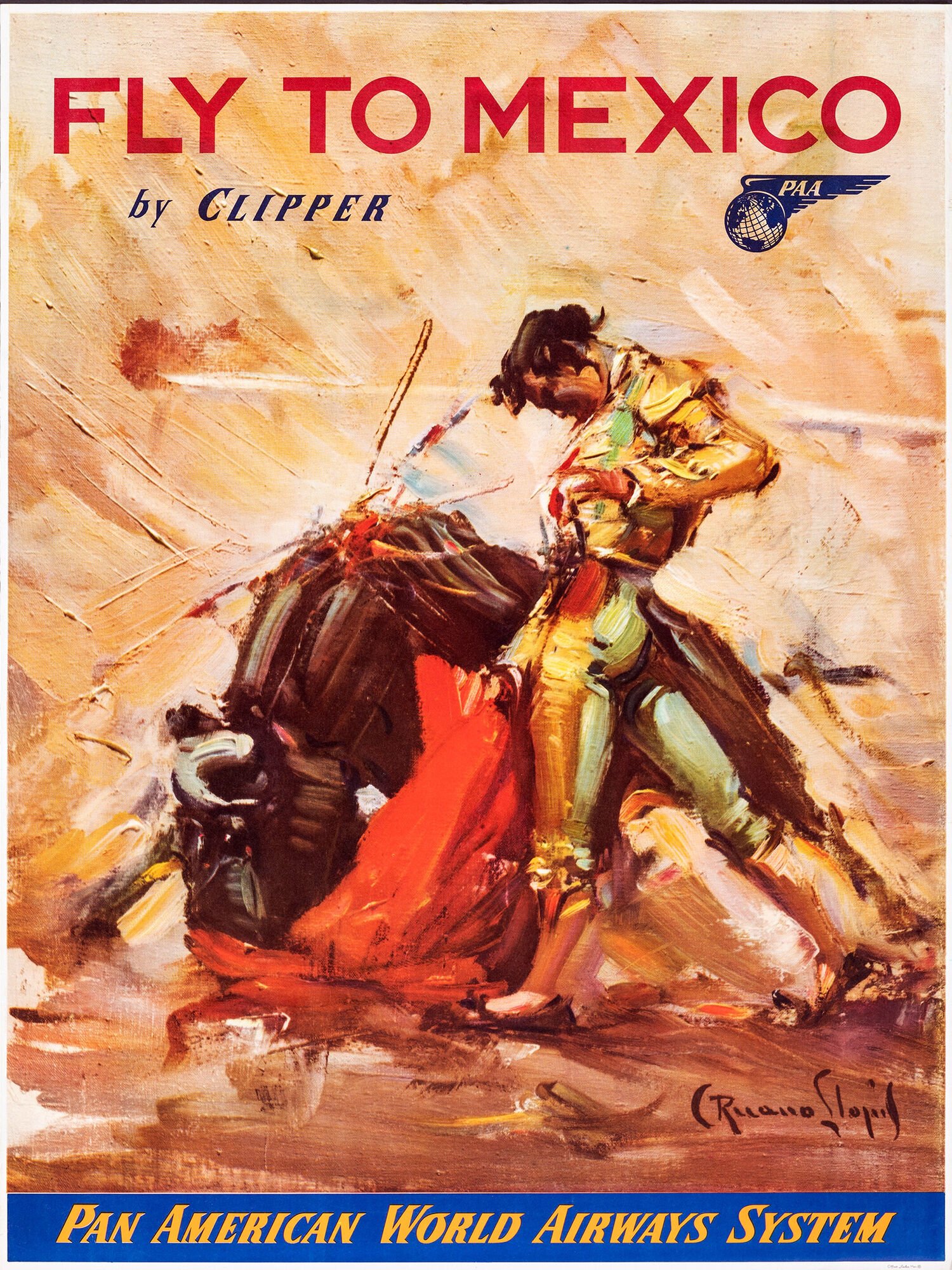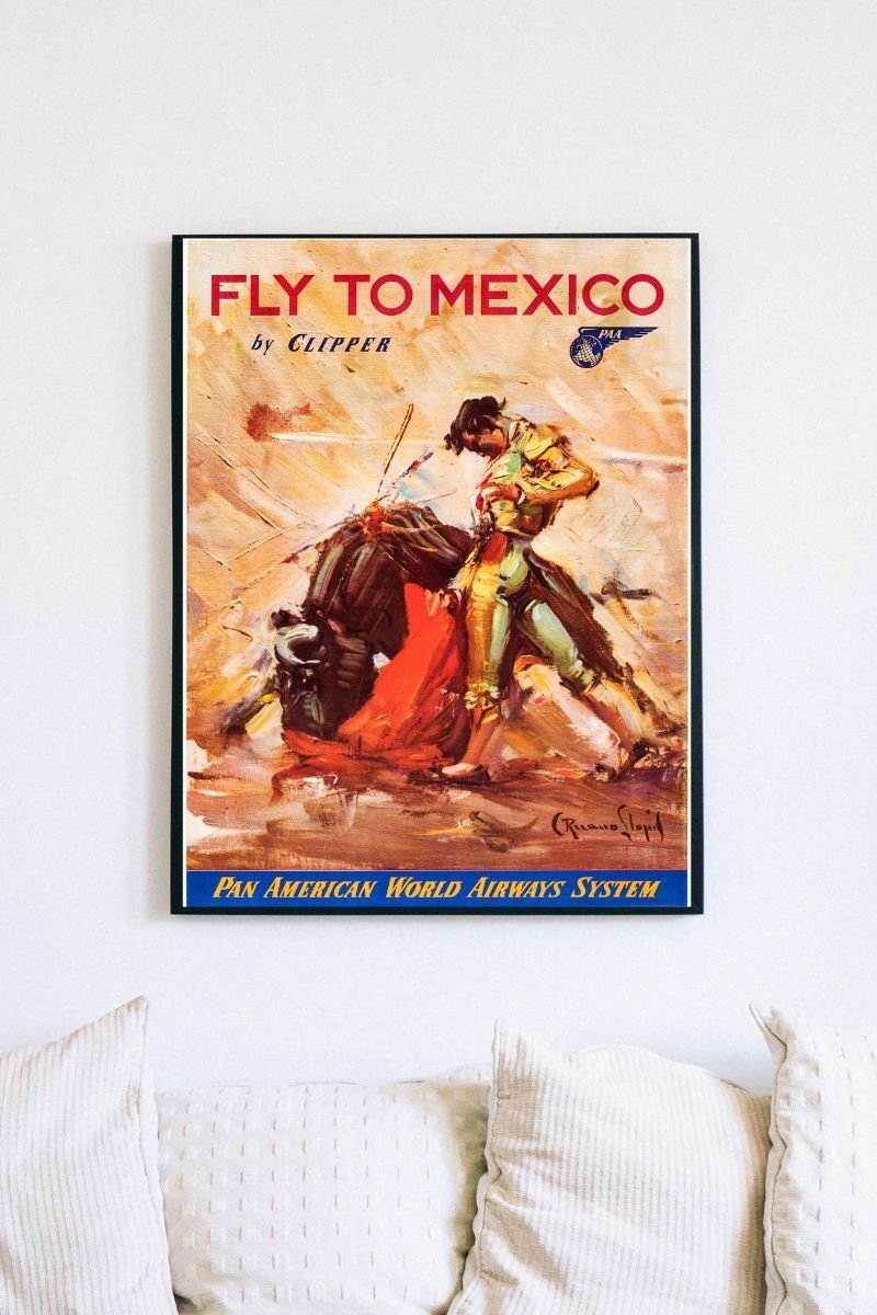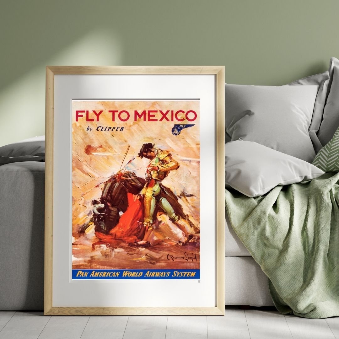 Vintage Fly to Mexico Pan Am Poster – Retro Pan American Airlines Travel Advertisement Print