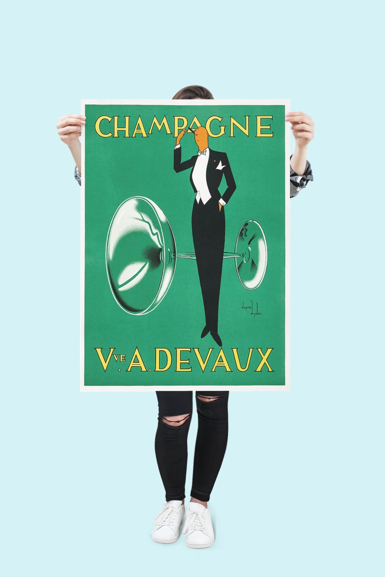French Wine Advertising Poster – 1930s Champagne Art Deco Collectible