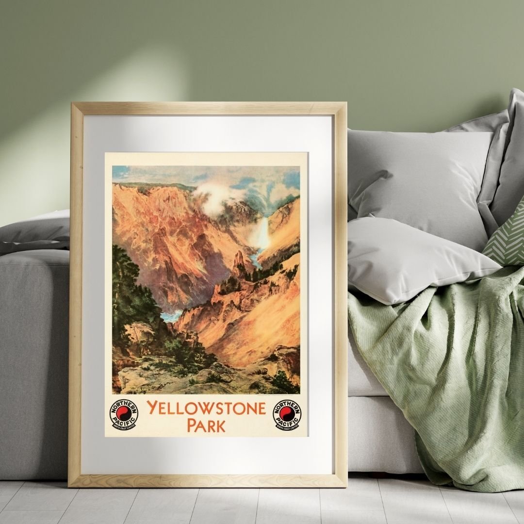 Yellowstone National Park Poster – Vintage USA Travel Art Featuring Scenic Nature, Wildlife & Geysers, Retro Tourism Wall Decor